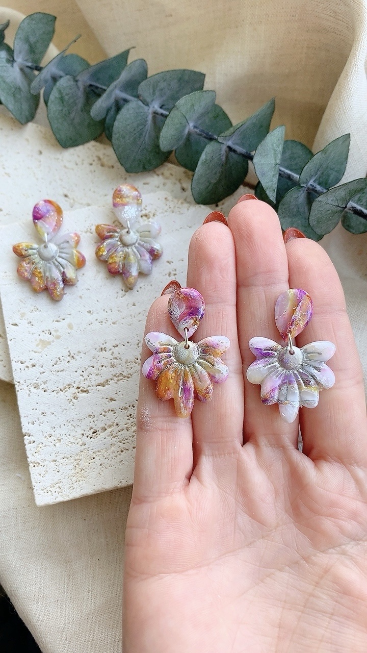 These earrings are carefully handcrafted using polymer clay and finished with stainless steel findings. Very lightweight and comfortable to wear.