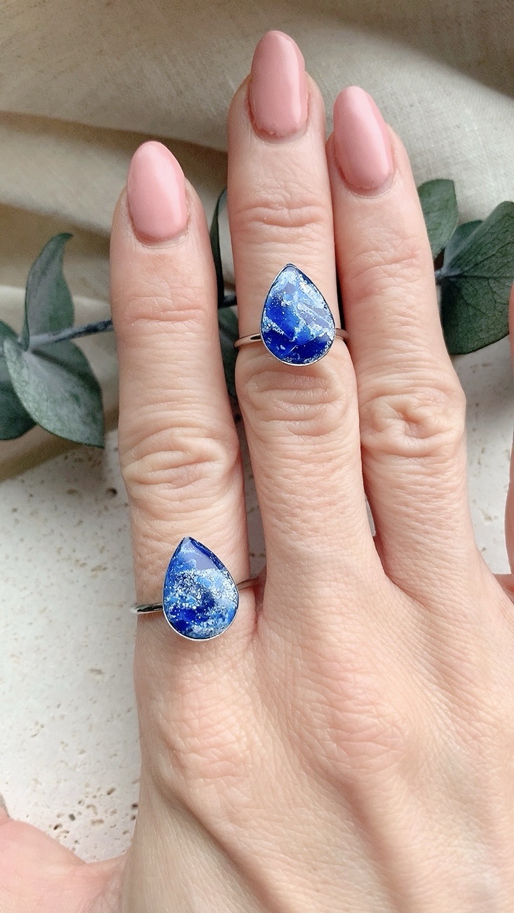 These rings are carefully handcrafted using polymer clay. Lapis Lazuli Inspired. Embedded on an adjustable ring stainless steel – so won’t turn your finger green and tarnish resistant! Very lightweight and comfortable to wear.