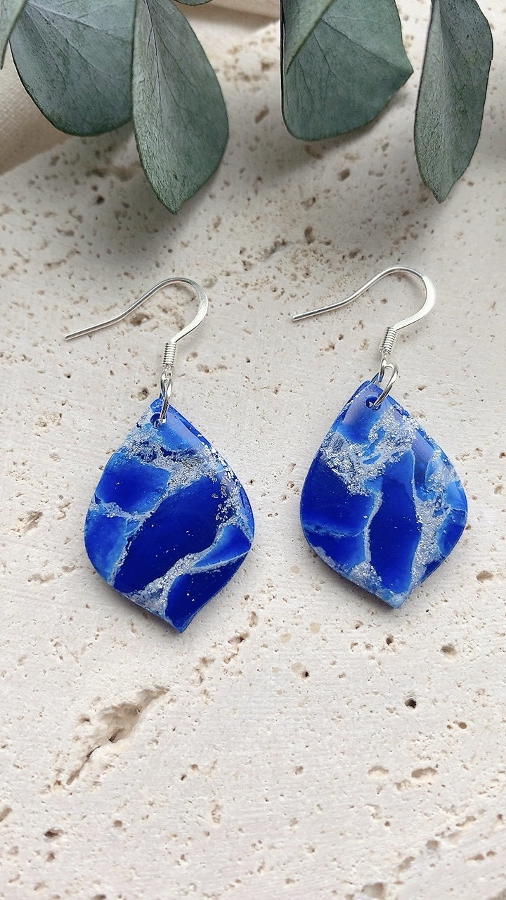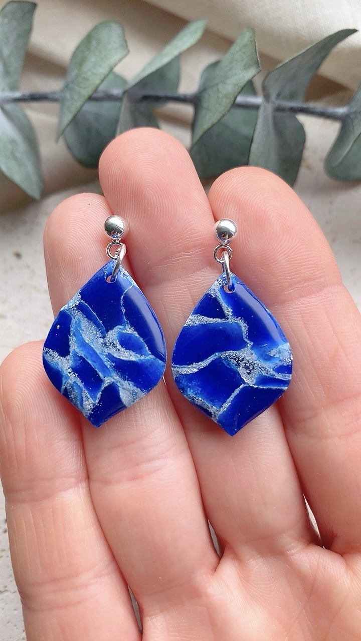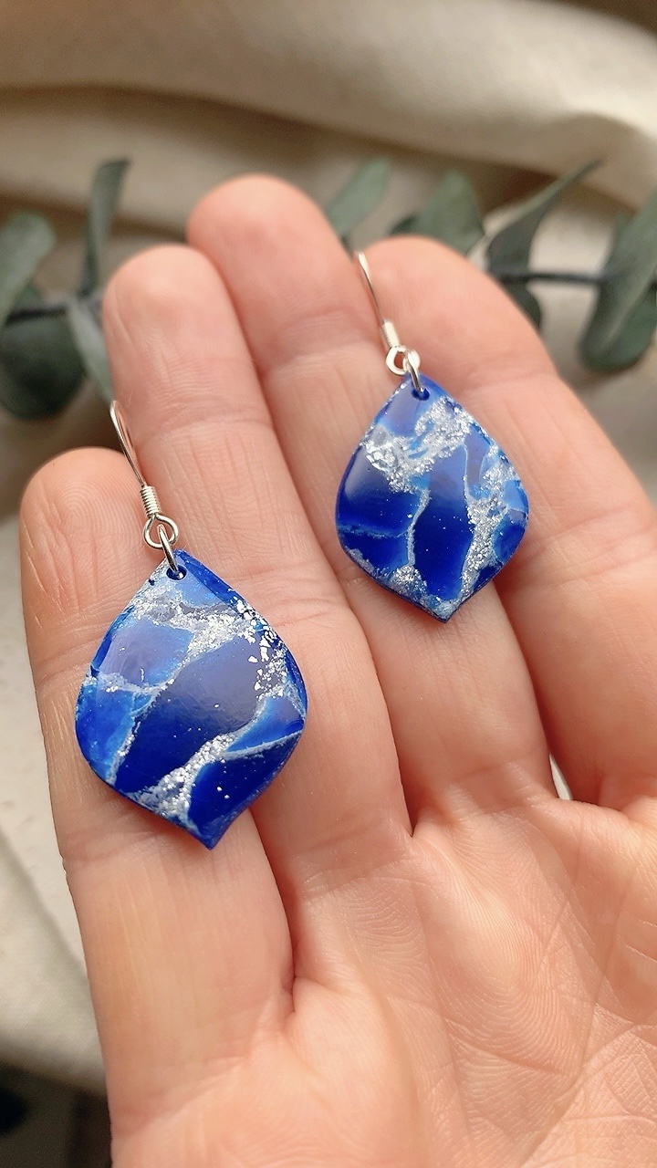 These earrings are carefully handcrafted using polymer clay and silver leaf. Lapis Lazuli inspired but made from Polymer clay! Very lightweight and comfortable to wear.  Choose from stainless steel hooks/ballposts.