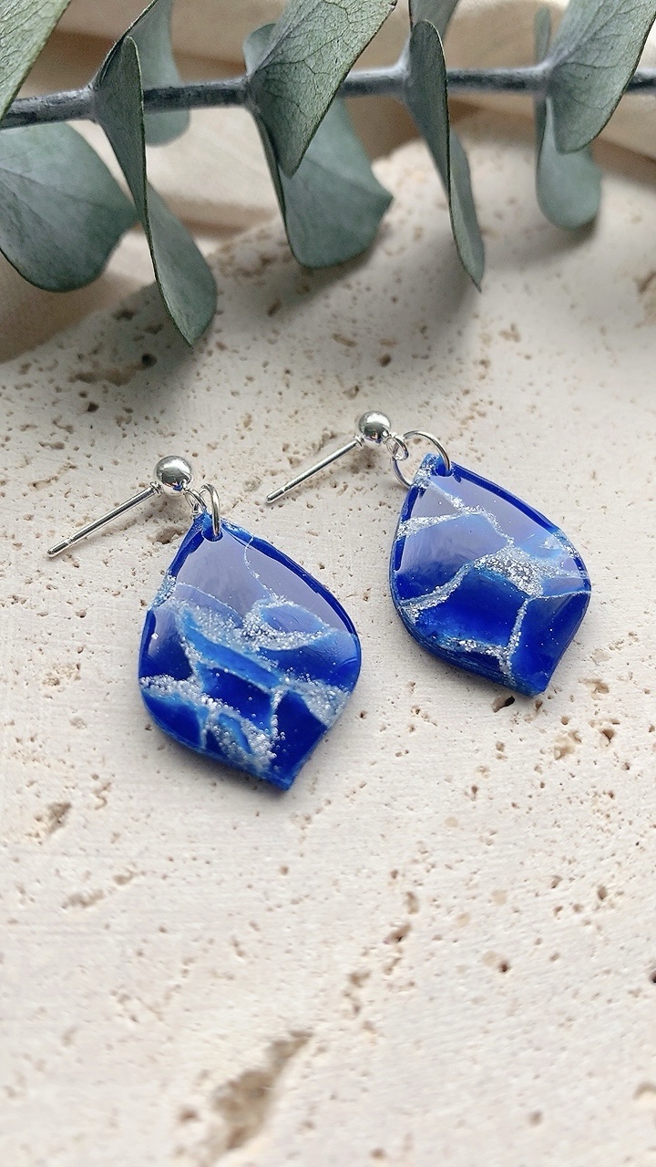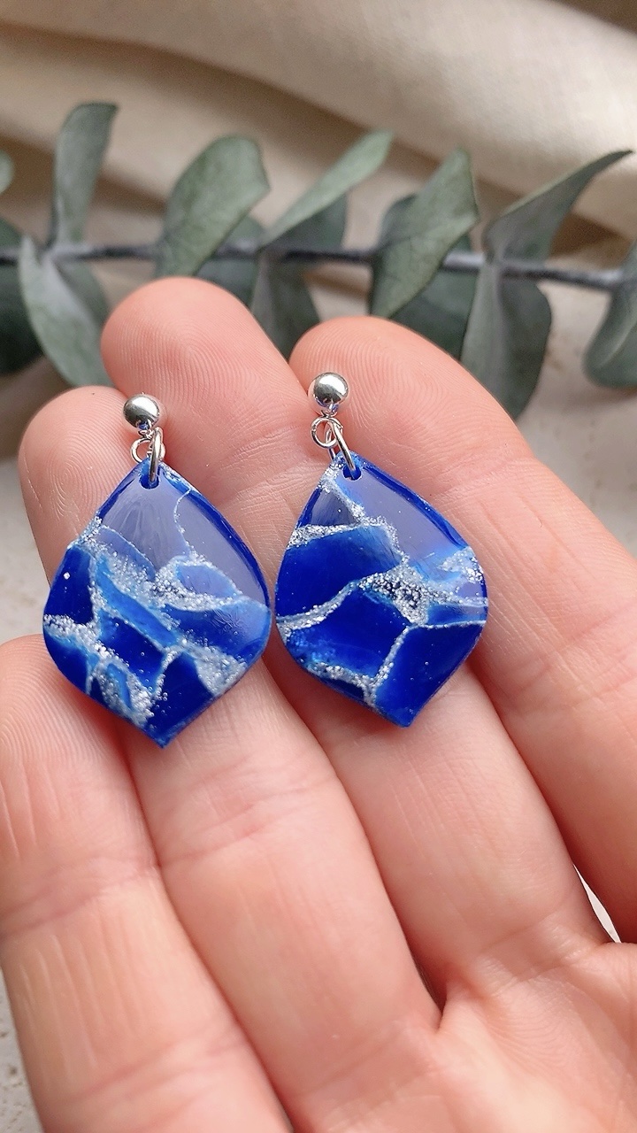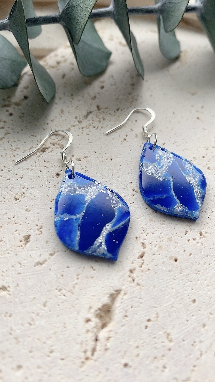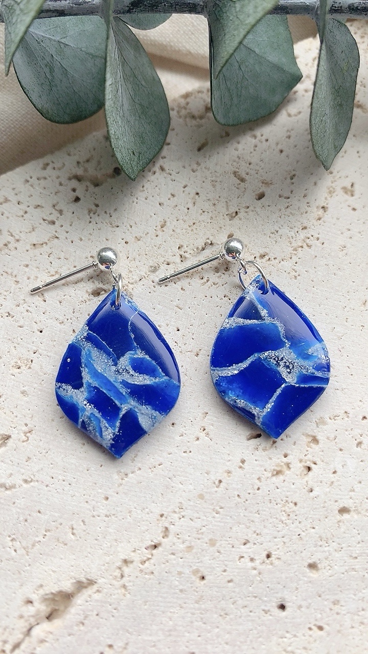 These earrings are carefully handcrafted using polymer clay and silver leaf. Lapis Lazuli inspired but made from Polymer clay! Very lightweight and comfortable to wear.  Choose from stainless steel hooks/ballposts.