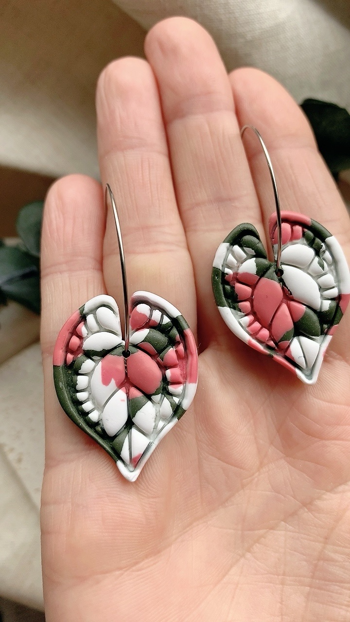The perfect earrings for a plant lover! These earrings are carefully handcrafted using polymer clay shaped like a alocasia leaf and finished hypoallergenic 30mm stainless steel hoops suitable for sensitive ears. Very lightweight and comfortable to wear. Choose from Gold or Silver.