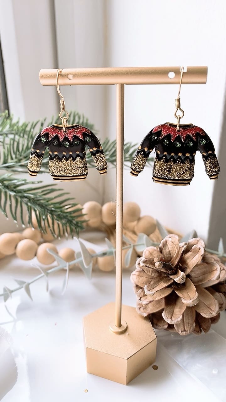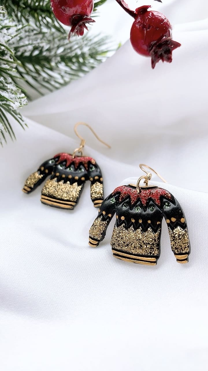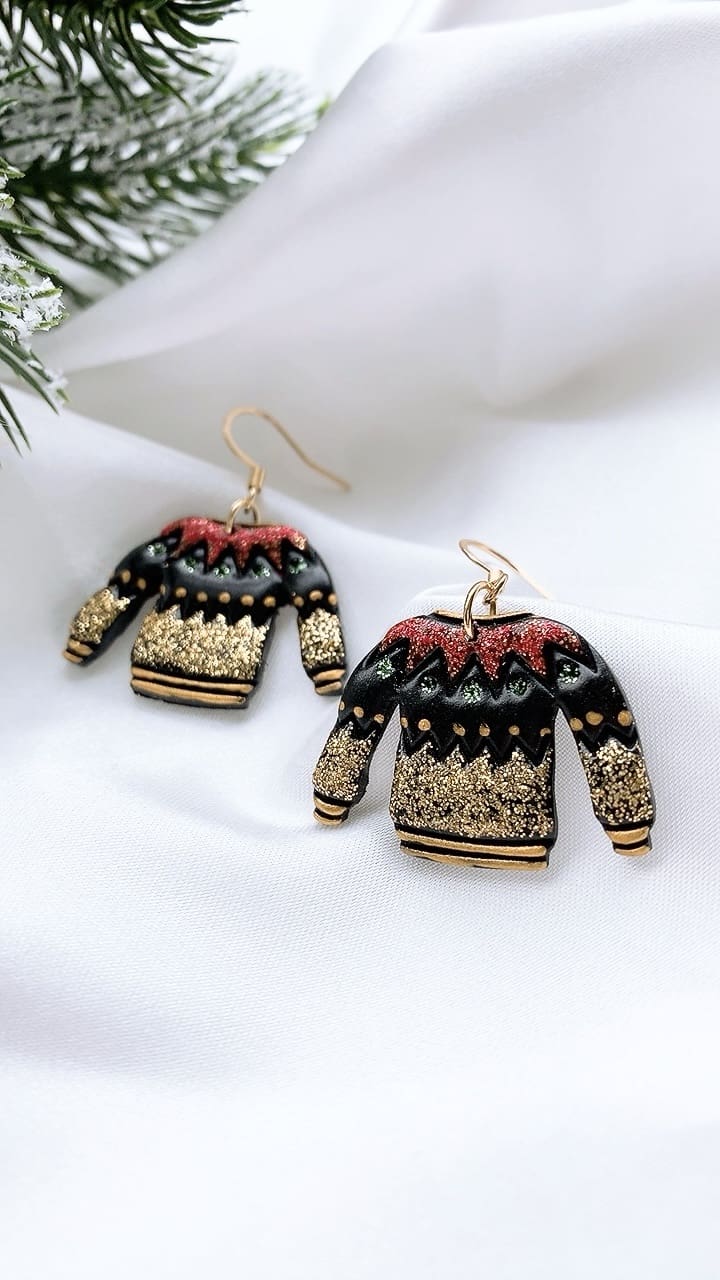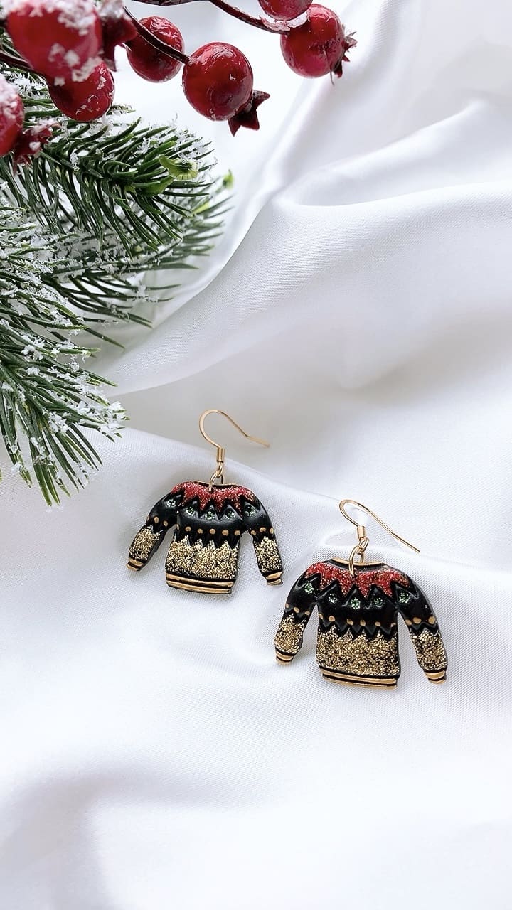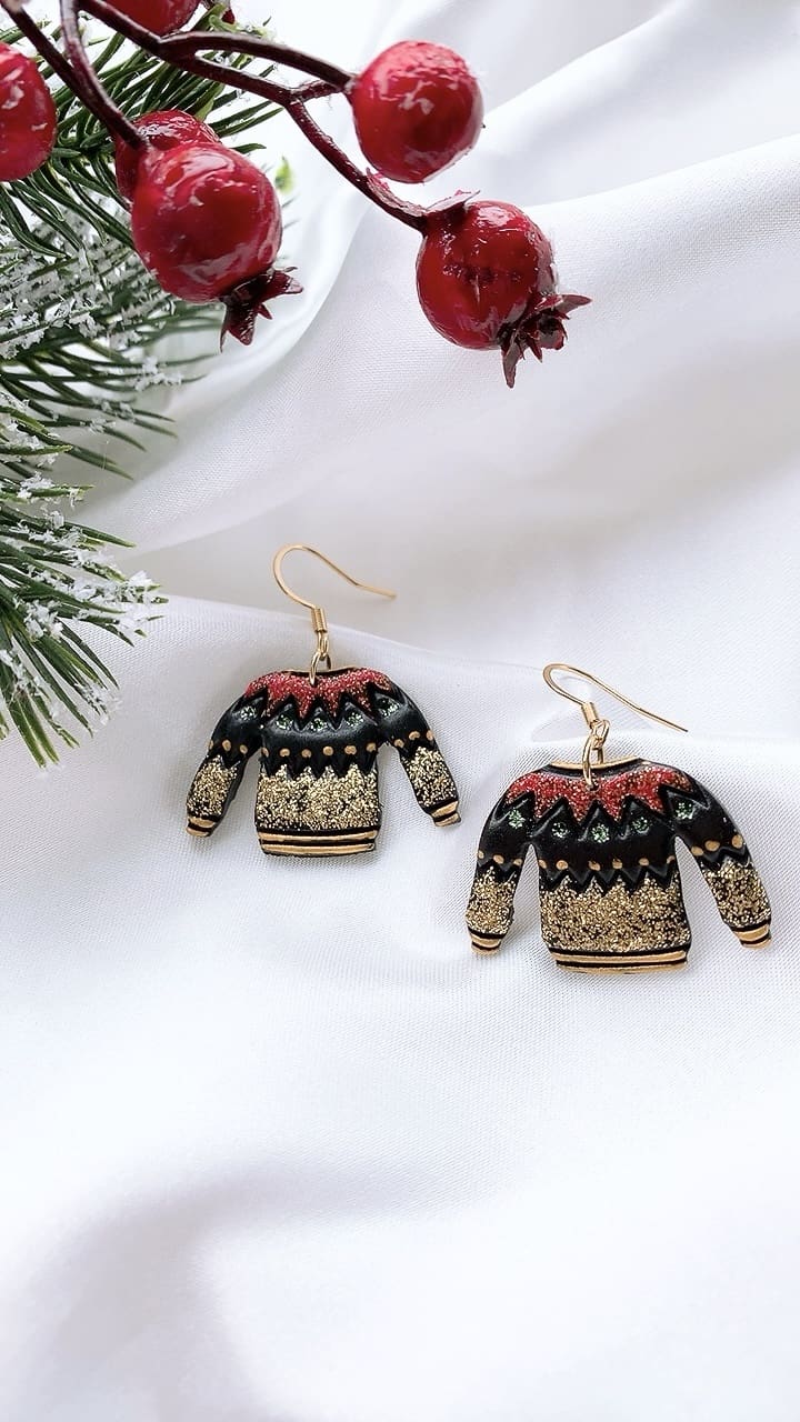 Super sparkly Black Christmas Jumper perfect for the Christmas season! All earring findings are hypoallergenic and suitable for sensitive ears.