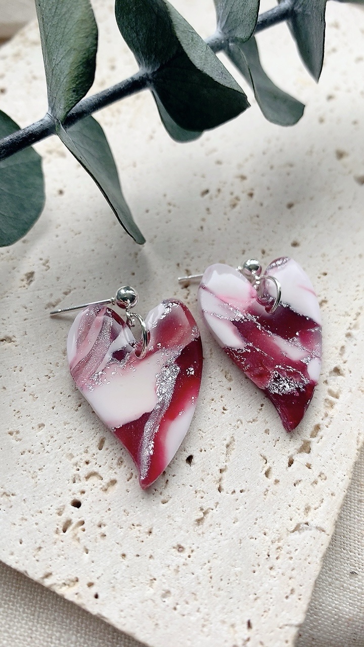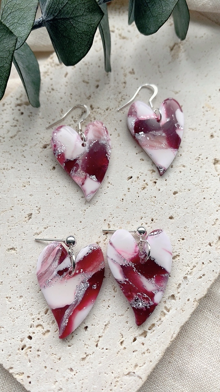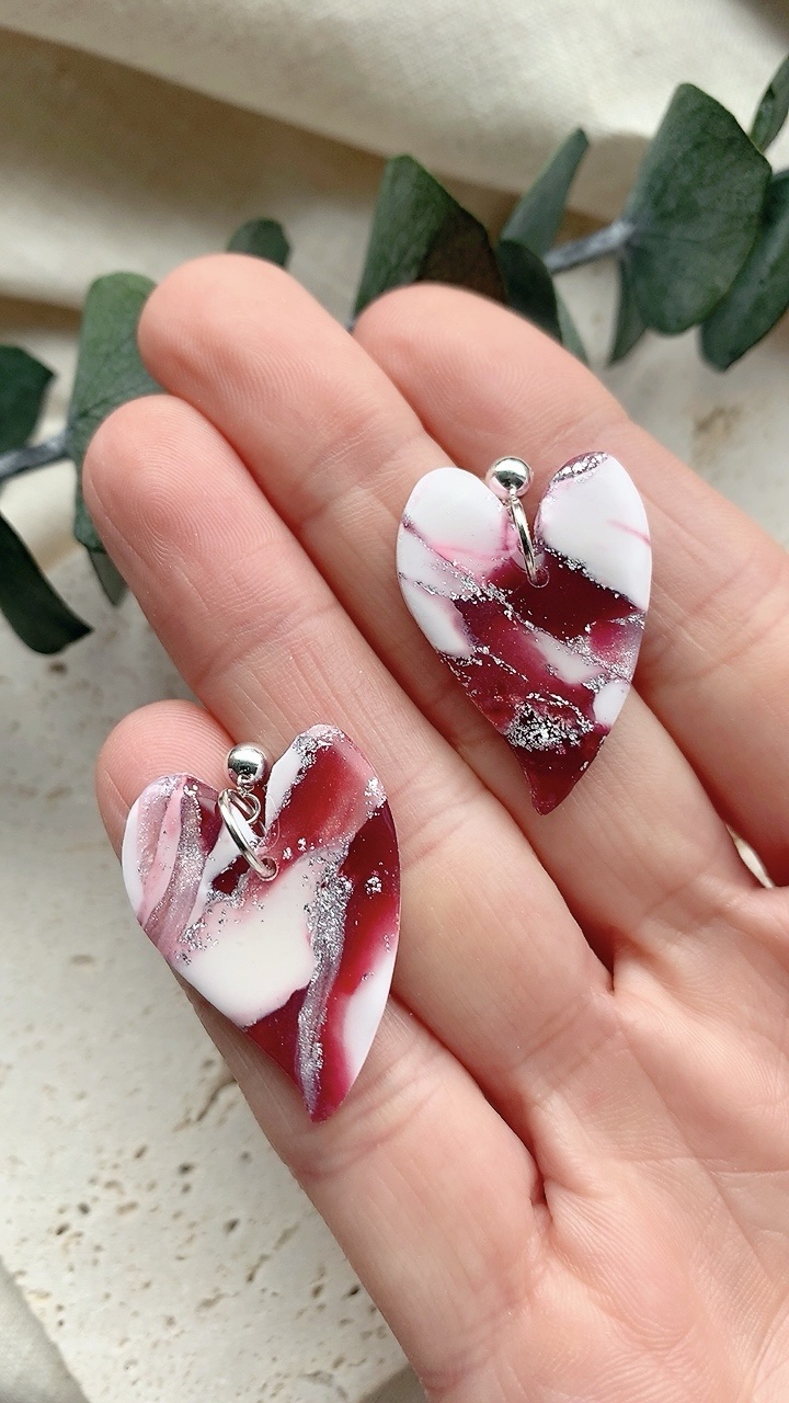 These earrings are carefully handcrafted using polymer clay. Very lightweight and comfortable to wear. Choose from stainless steel hooks/ballposts. Also available in gold!