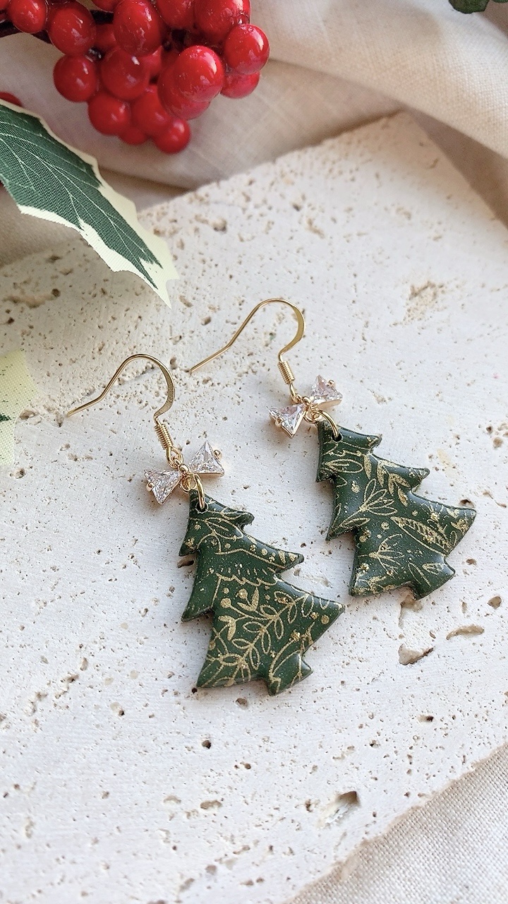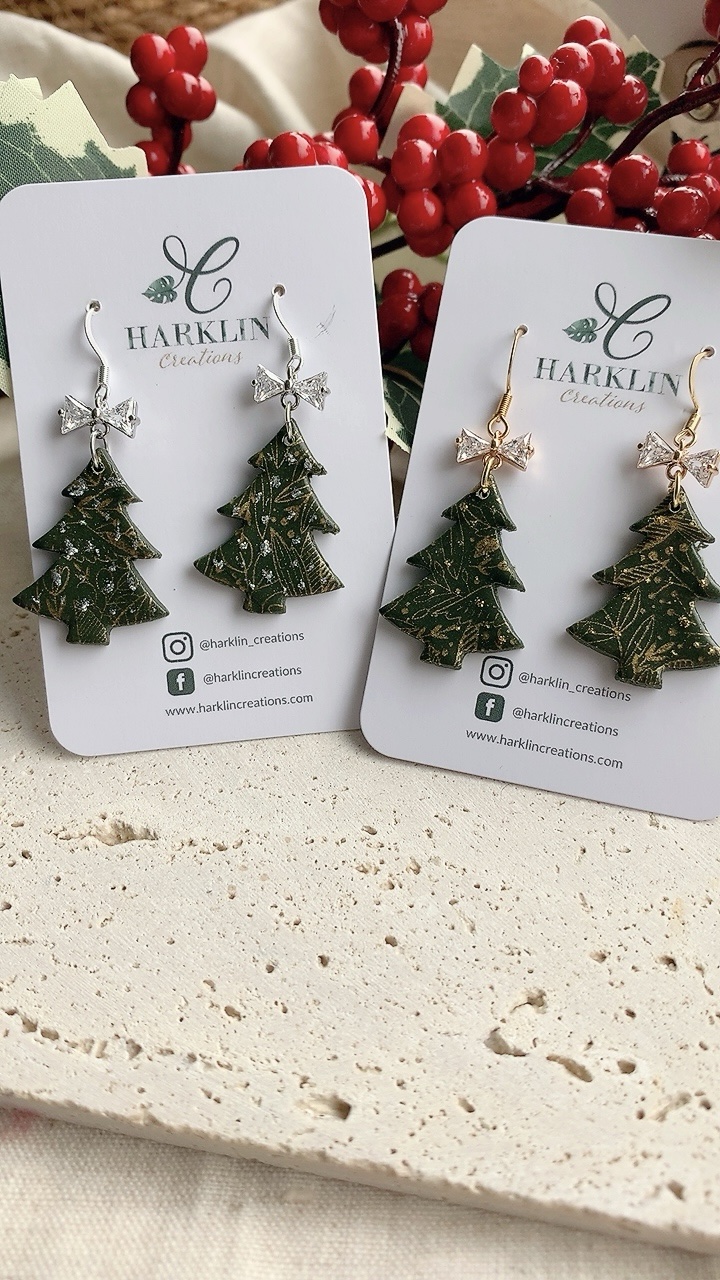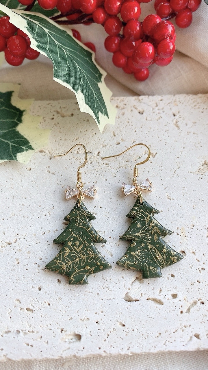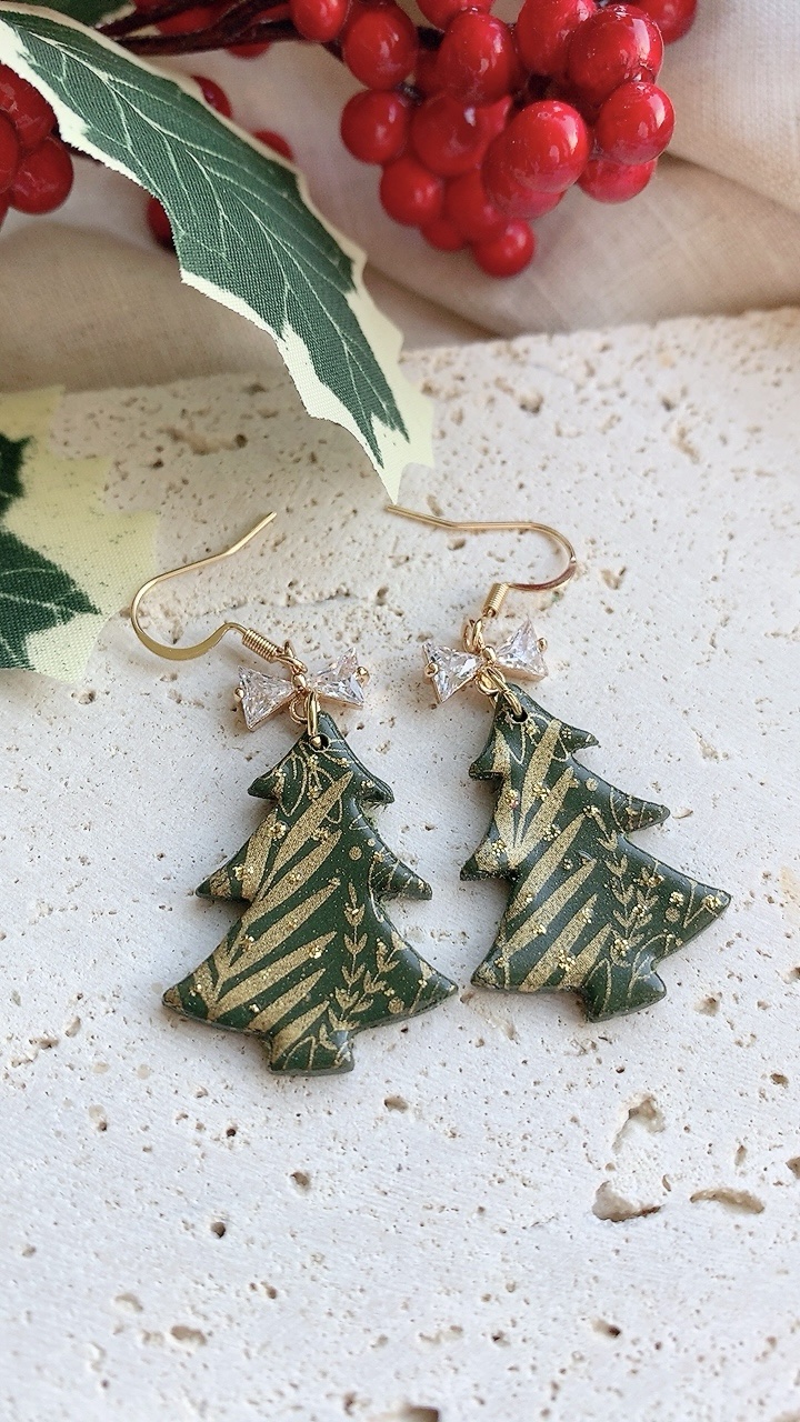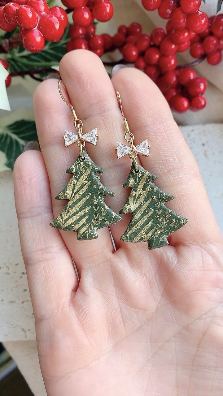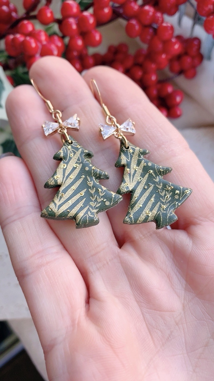 These earrings are carefully handcrafted using polymer clay and a cubic zirconia bow charm. Silver option also available. Can be changed to stainless steel hooks/ballposts.