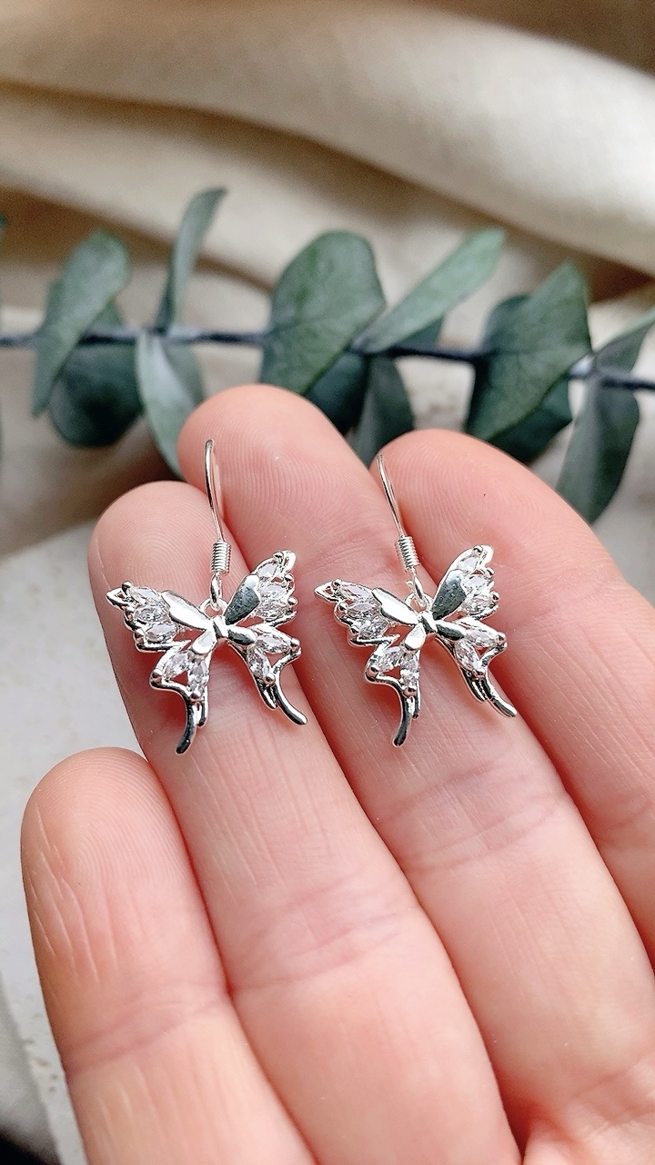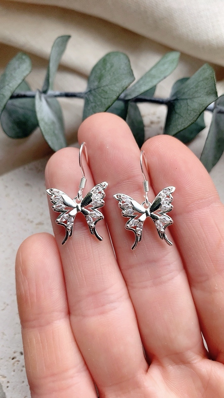 Beautiful silver butterfly charm earrings with 925 silver plated stainless steel hooks, hypoallergenic and suitable for sensitive ears. Butterfly charm is Cadmium, lead and nickel free and 925 silver plated.