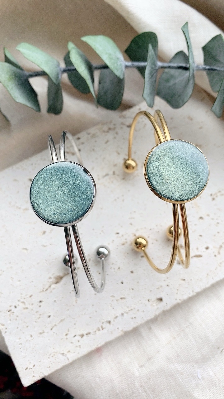 This bangle is carefully handcrafted using polymer clay. Embedded on an adjustable bangle. Very lightweight and comfortable to wear.