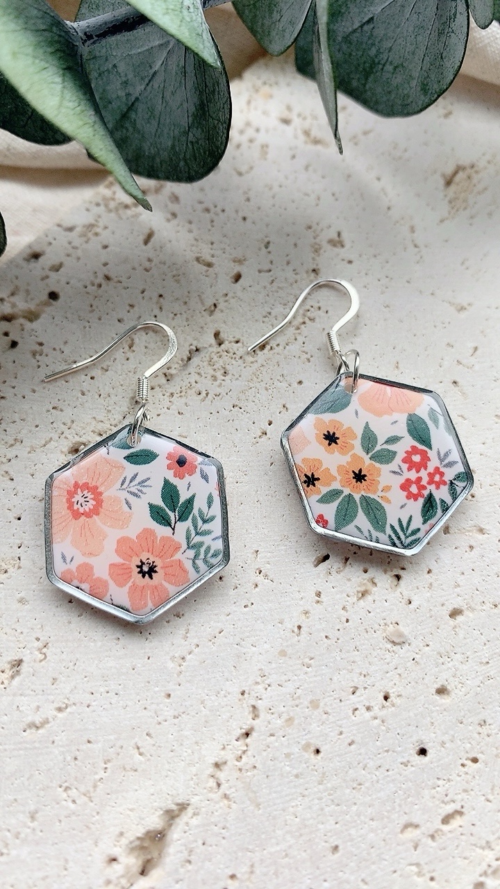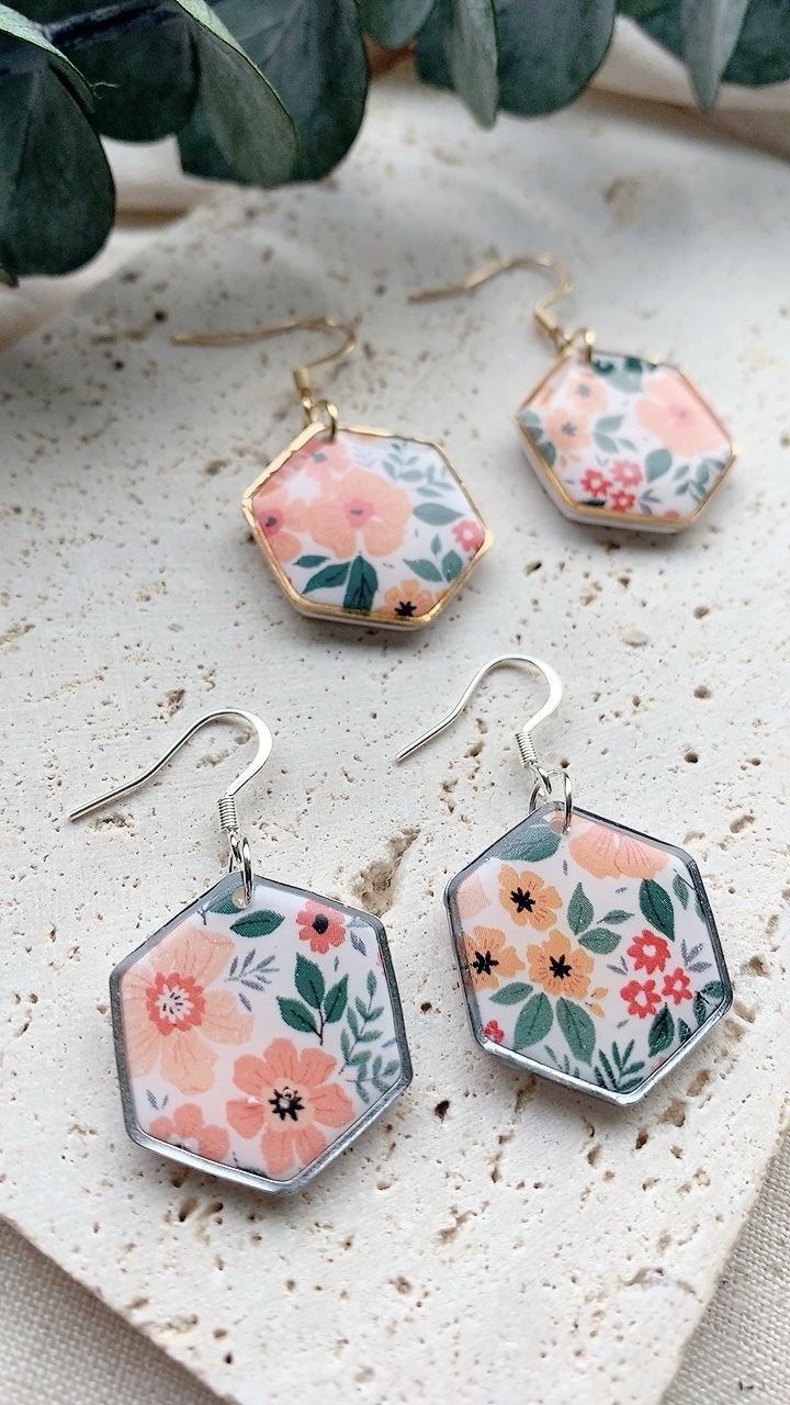 These earrings are carefully handcrafted using polymer clay. Very lightweight and comfortable to wear. Choose from stainless steel hooks/ballposts. Also available in gold!