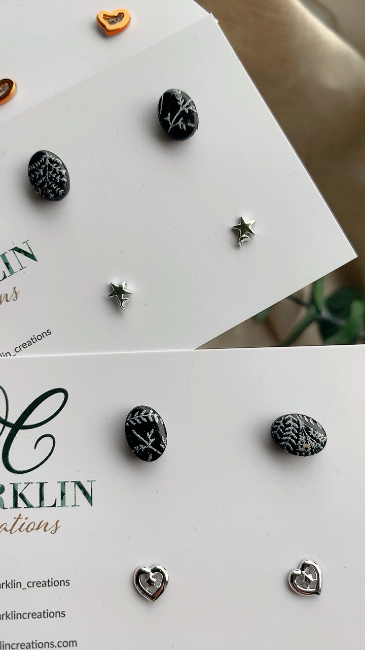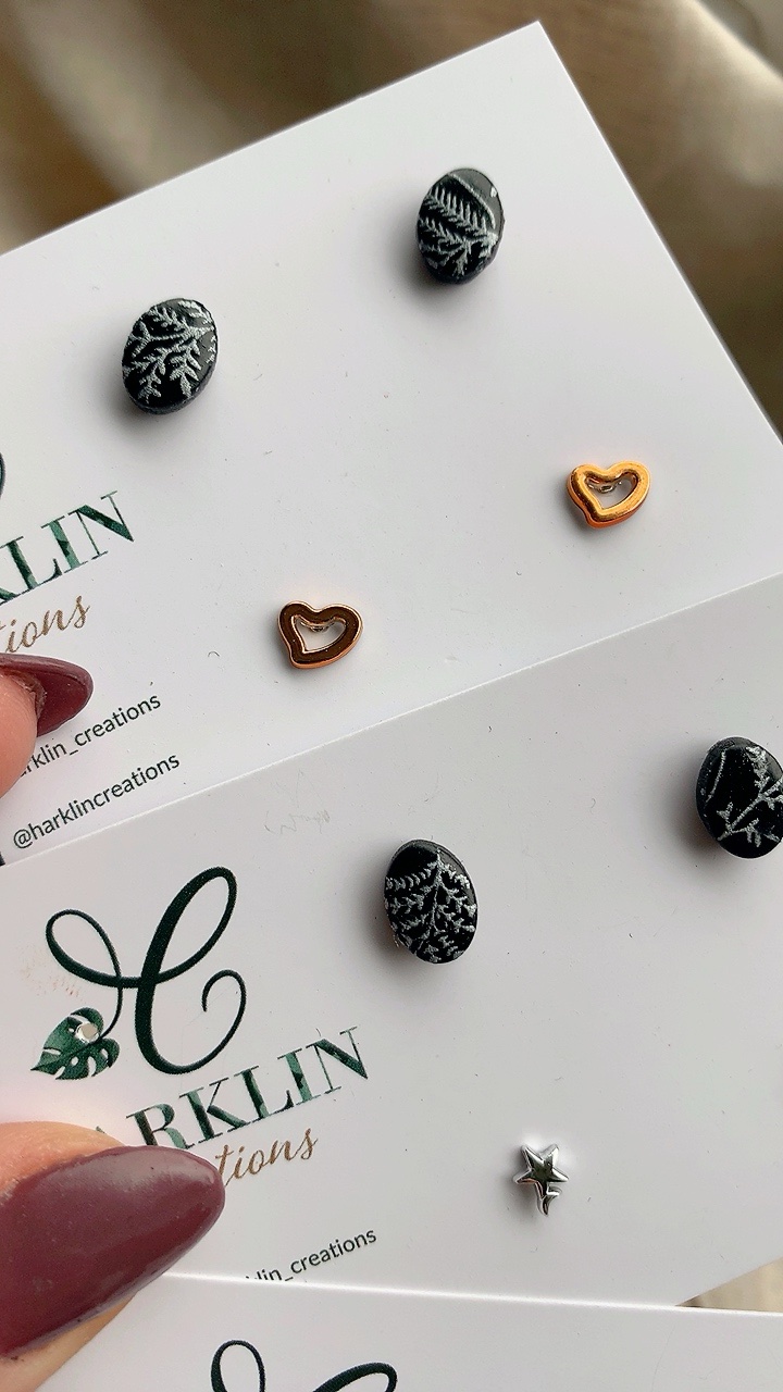 All jewellery is created using high quality polymer clay, hypoallergenic stainless steel findings, durable and comfortable to wear, non-toxic, and most importantly hypoallergenic, making these earrings safe for your skin and perfect for those with sensitive ears.