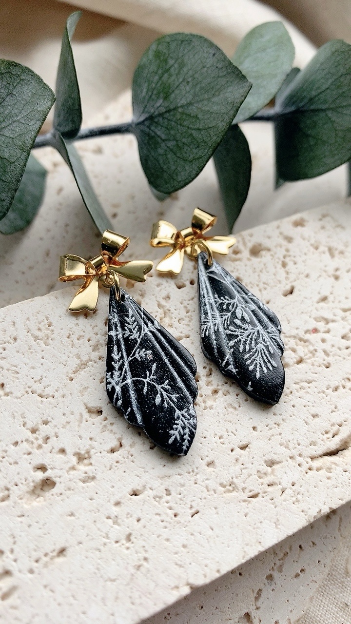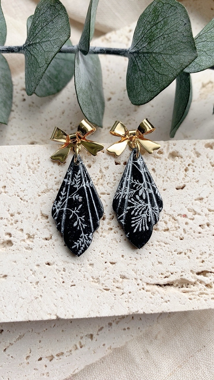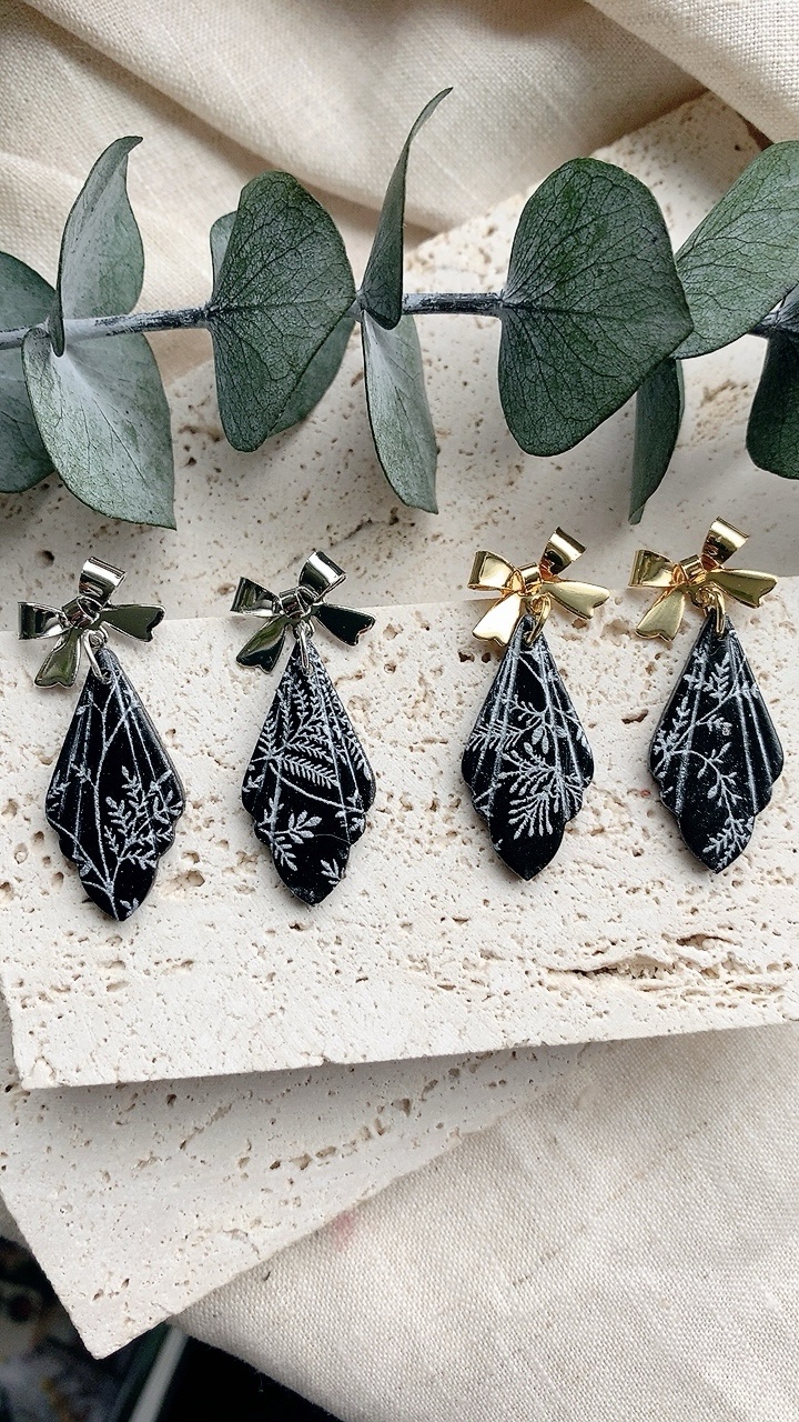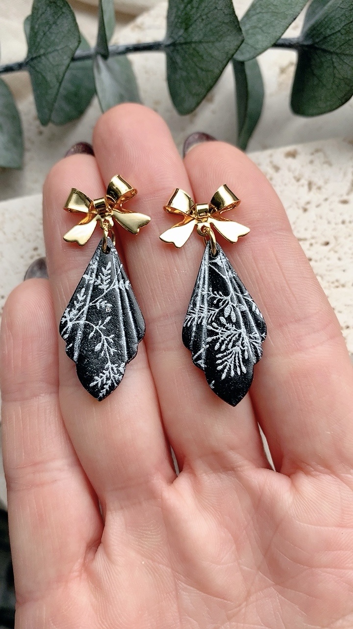 These earrings are carefully handcrafted using polymer clay and finished with nickel free bow style tops. Gold is 18k gold plated. Very lightweight and comfortable to wear. Choose from Gold or Silver tops. Can be changed to stainless steel hooks/ballposts (recommended for very sensitive ears).