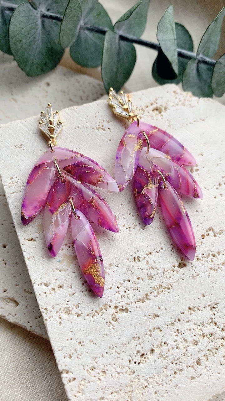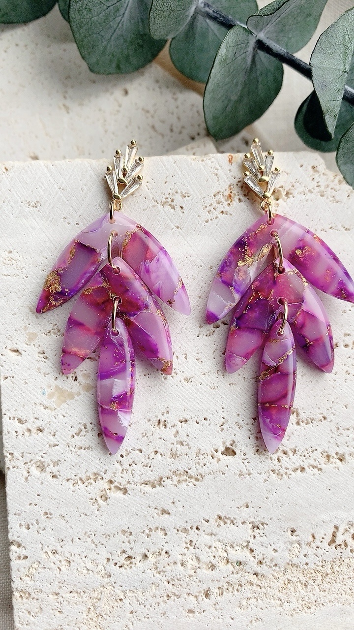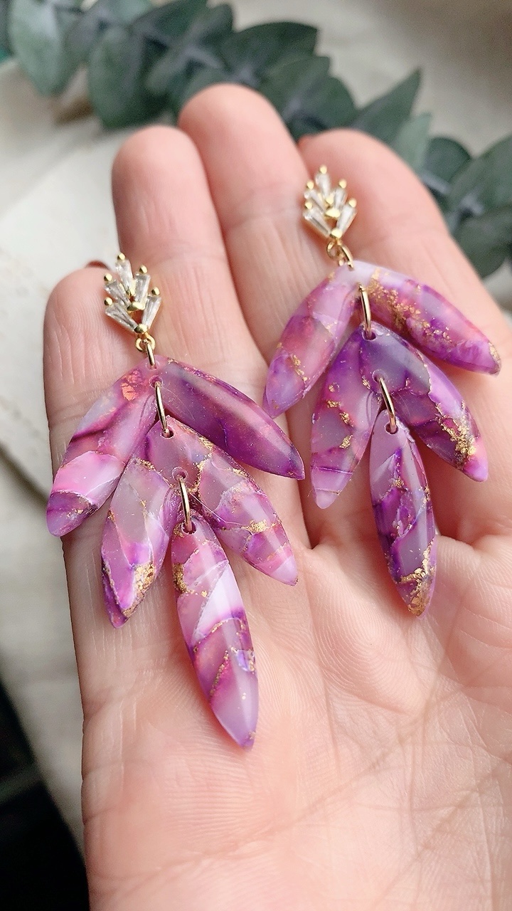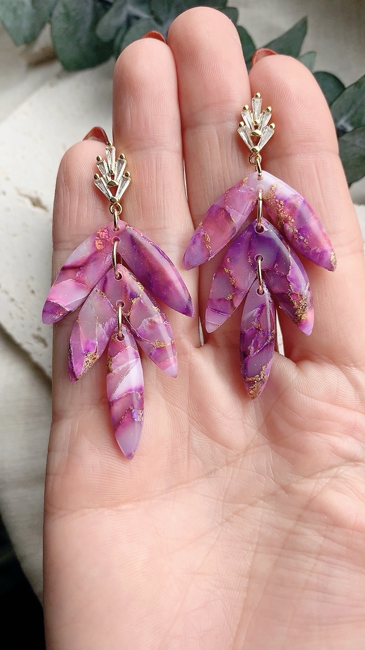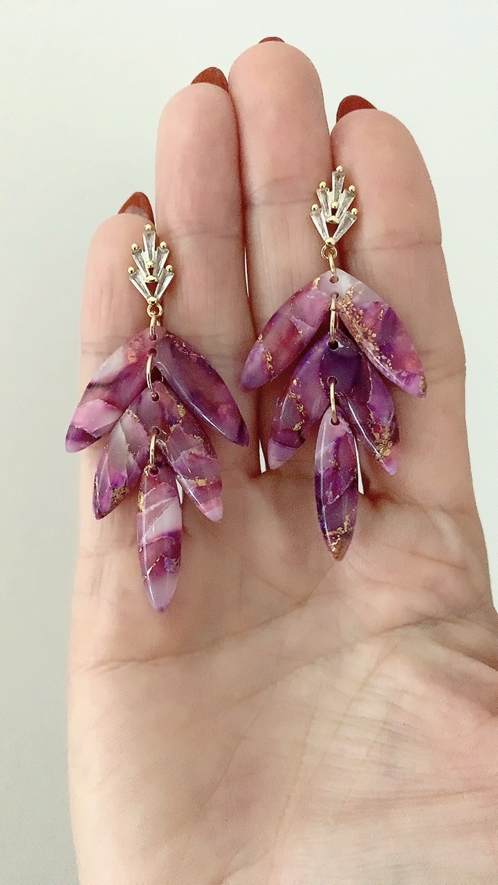 These earrings are carefully handcrafted using polymer clay and finished with 18k gold plated cubic zirconia art deco stud top. Very lightweight and comfortable to wear.