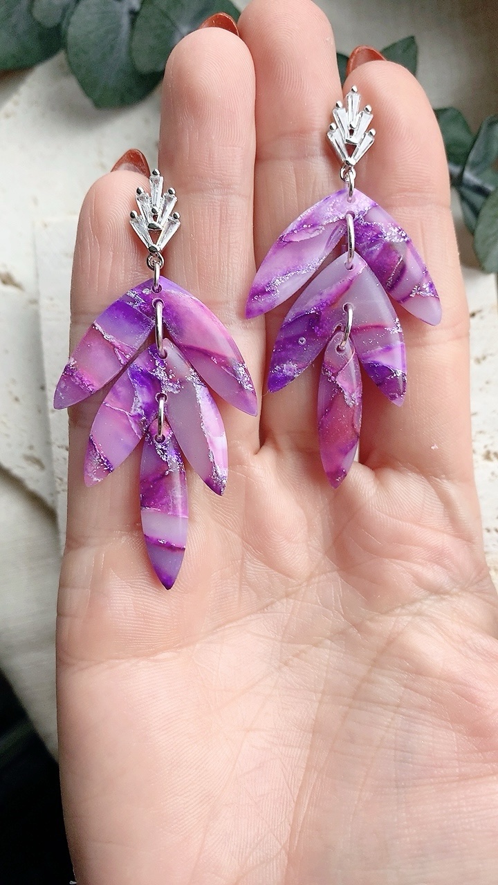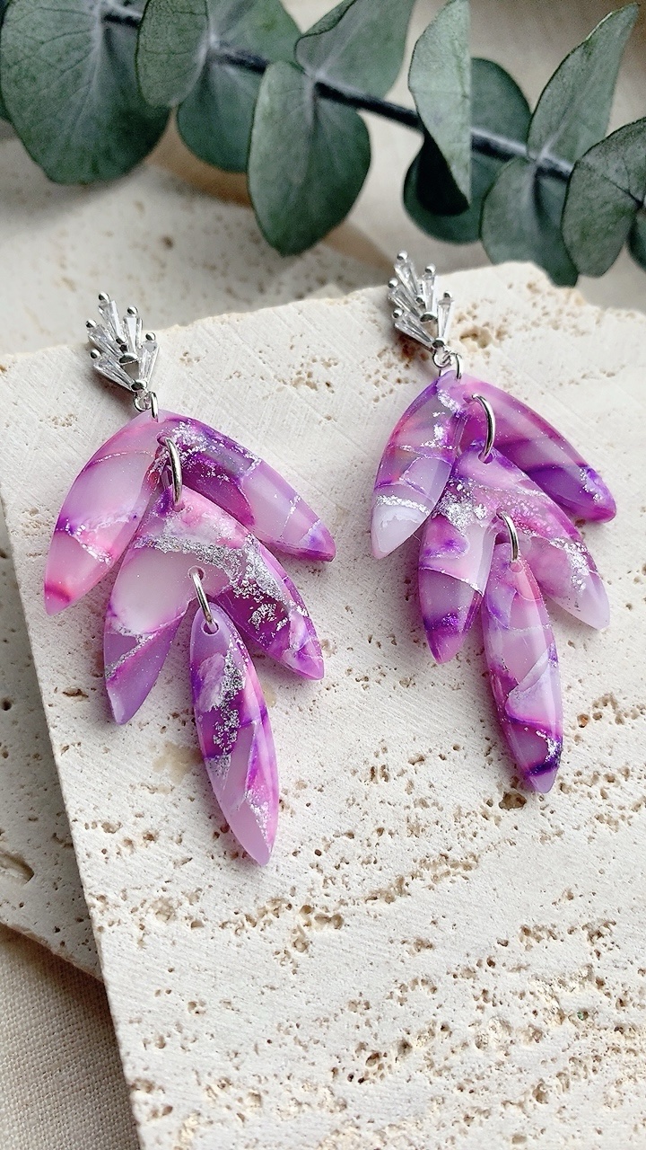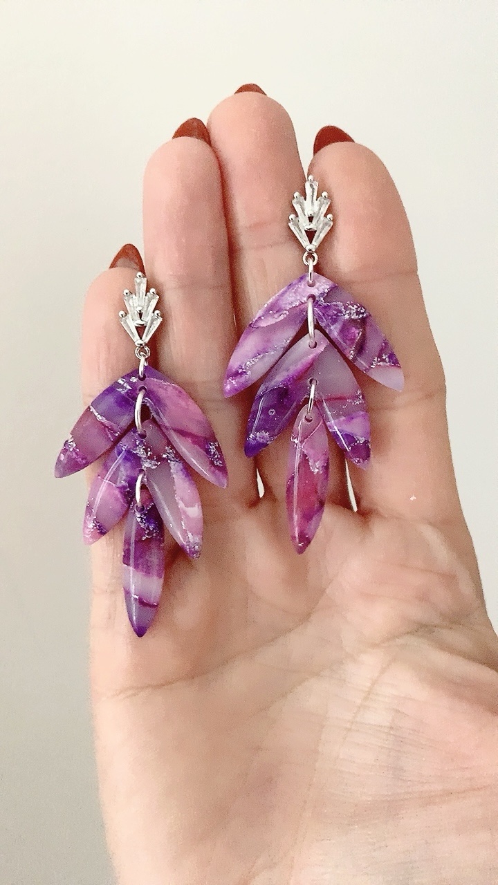 These earrings are carefully handcrafted using polymer clay and finished with 18k gold plated cubic zirconia art deco stud top. Very lightweight and comfortable to wear.