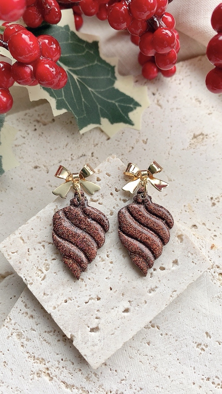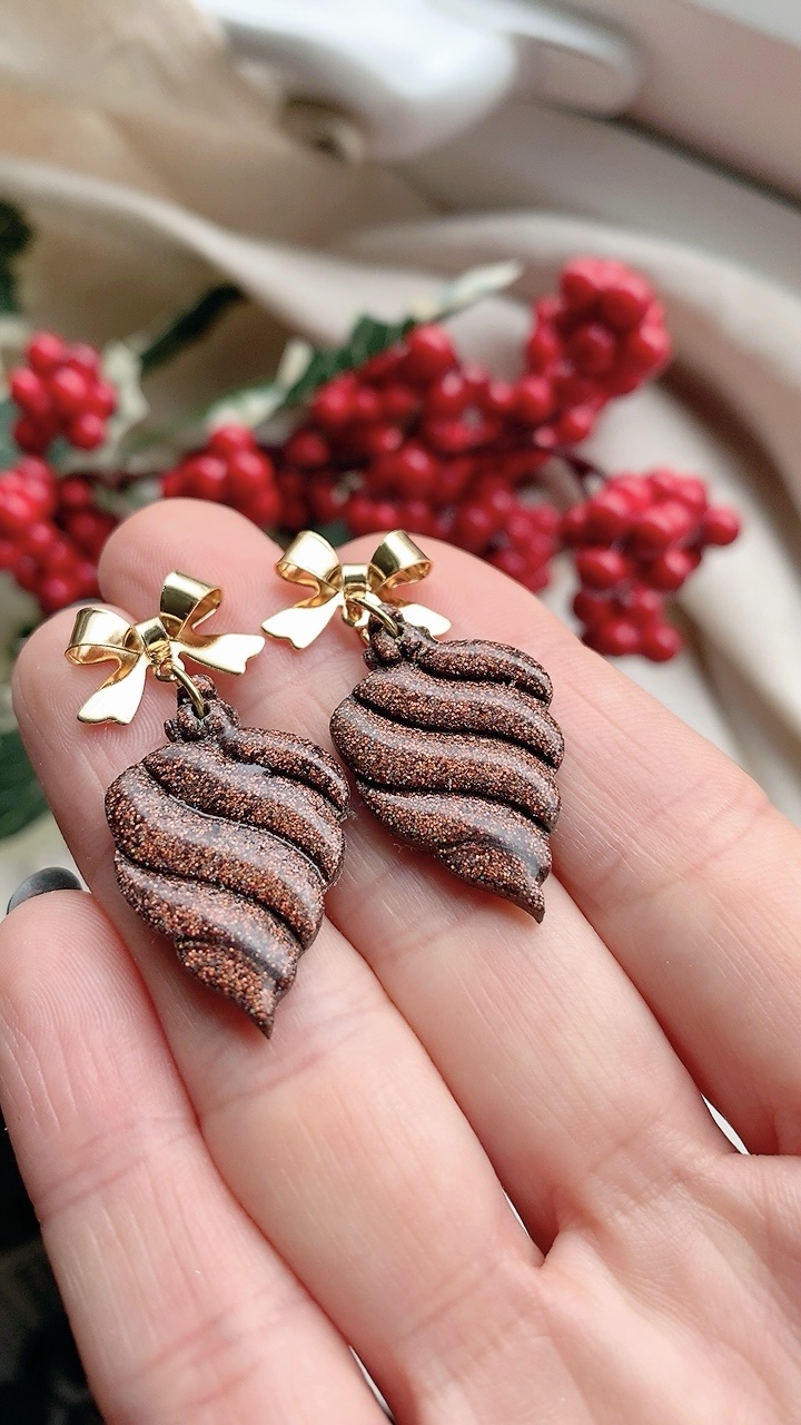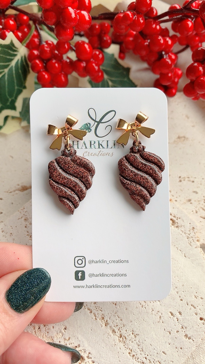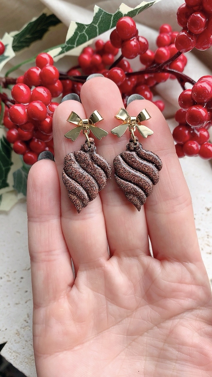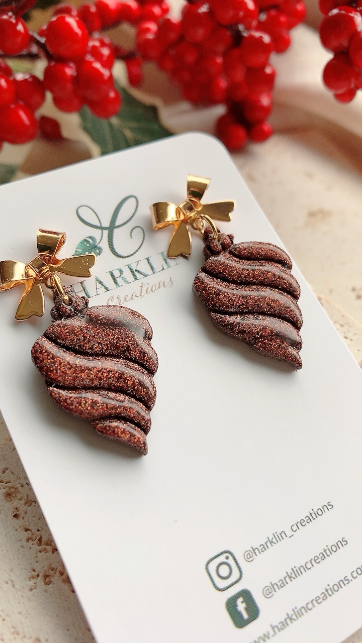 These earrings are carefully handcrafted using polymer clay and finish. *Bow tops not suitable for sensitive ears, recommend you change to ball posts or hooks as they are both stainless steel*.