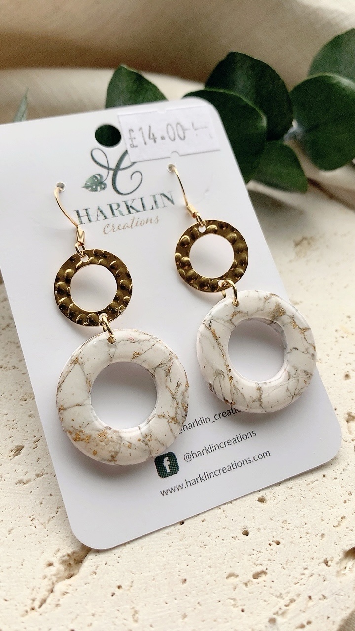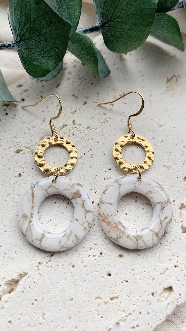 These earrings are carefully handcrafted using polymer clay and gold leaf. Very lightweight and comfortable to wear. Choose from stainless steel hooks/ballposts.