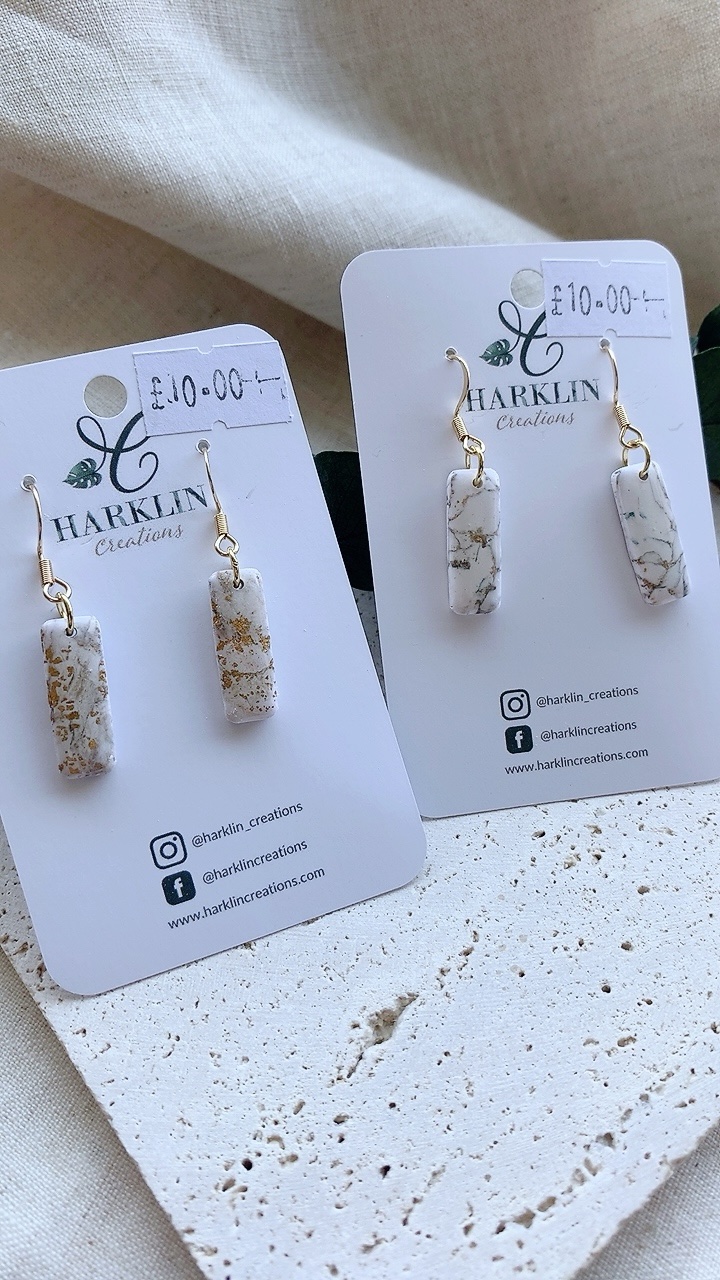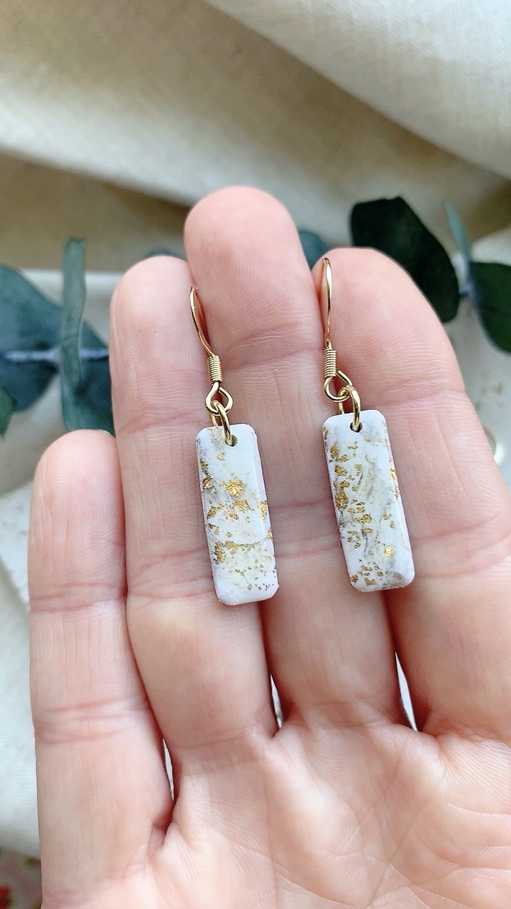 These earrings are carefully handcrafted using polymer clay and gold leaf. Very lightweight and comfortable to wear. Choose from stainless steel hooks/ballposts.