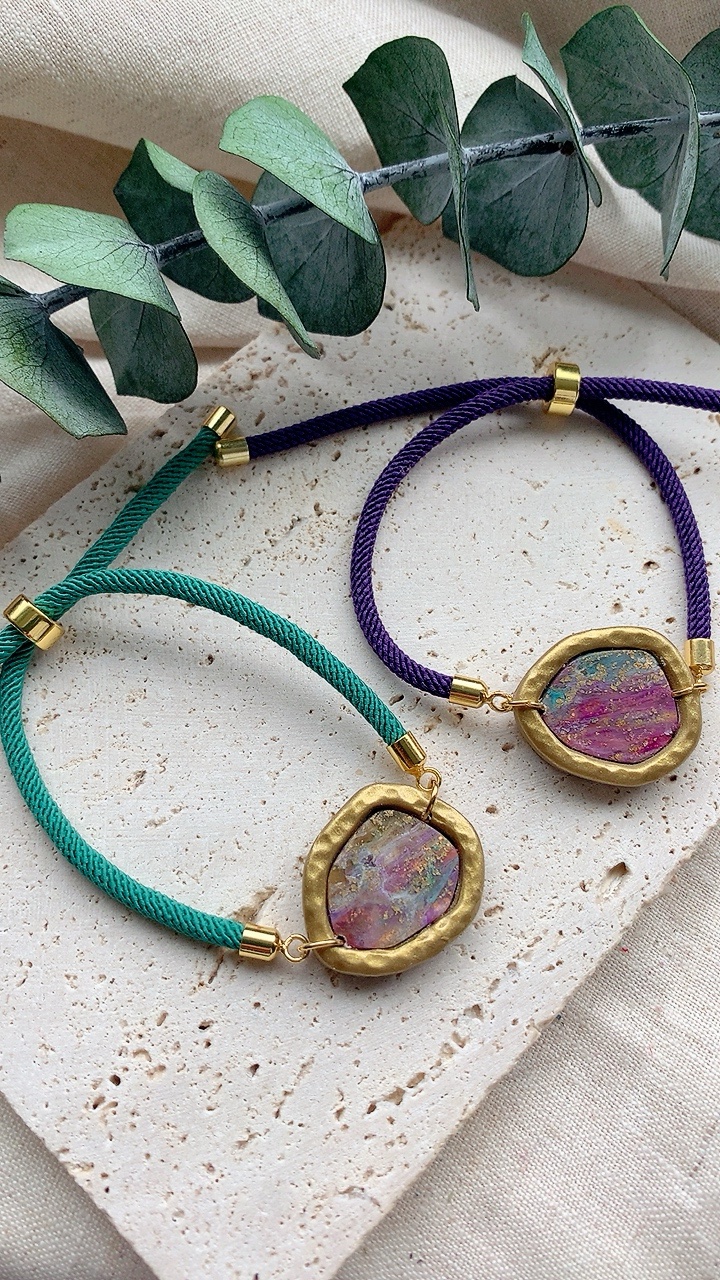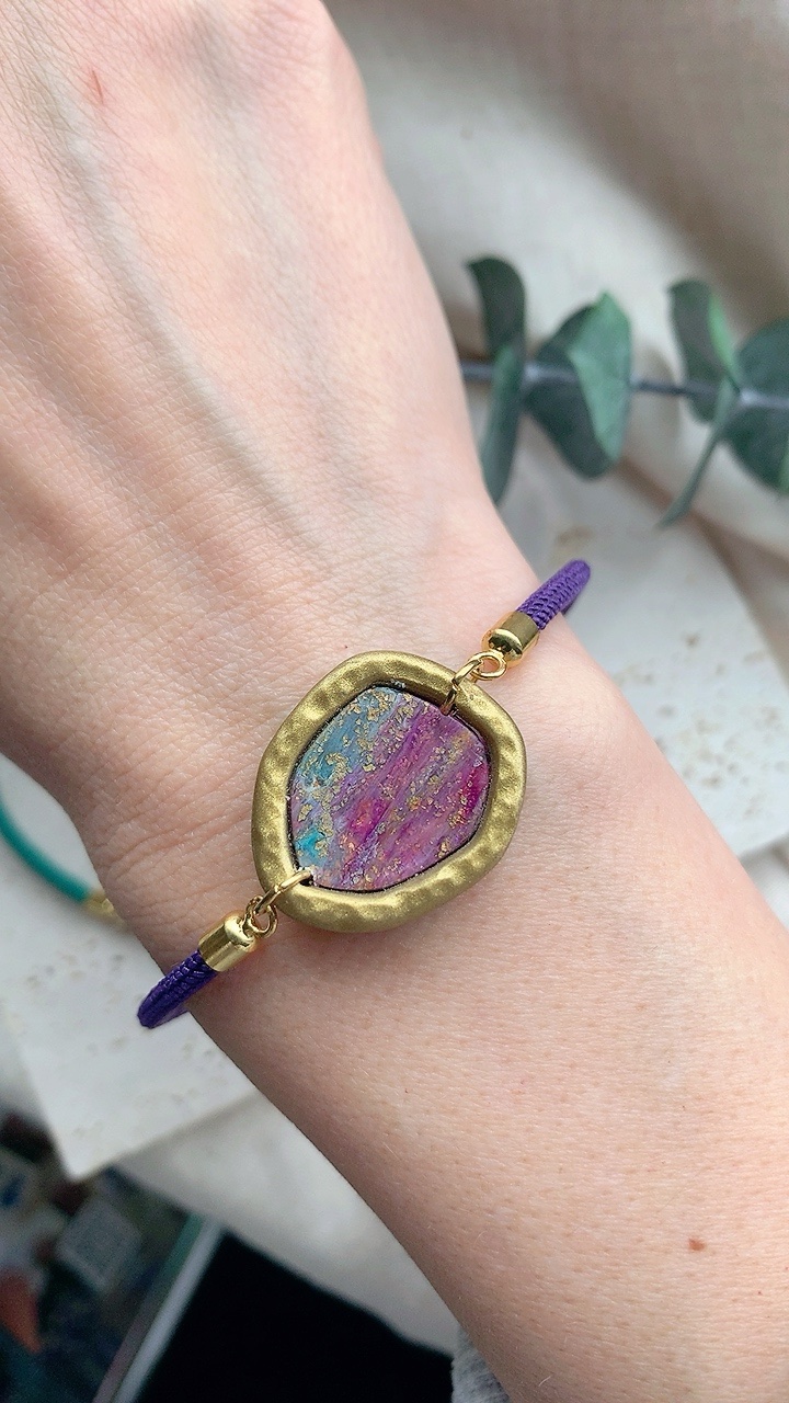 Stunning adjustable slider bracelet with handcrafted polymer clay.