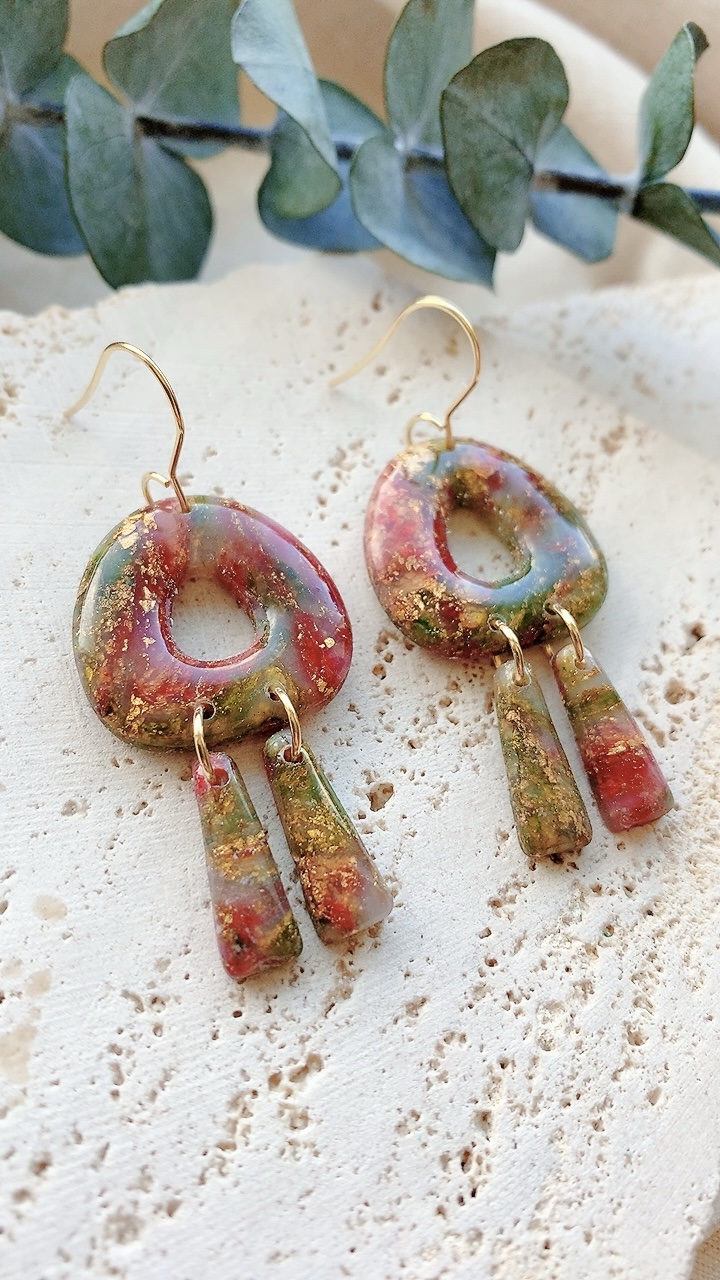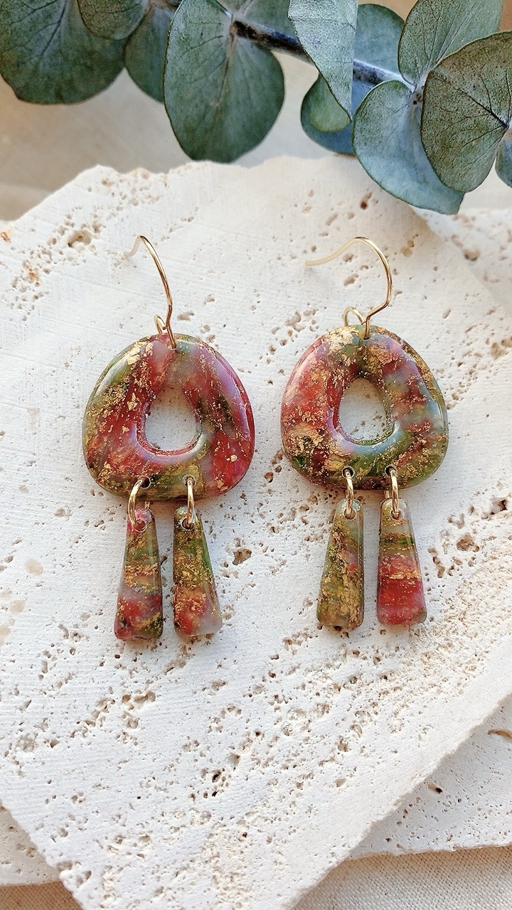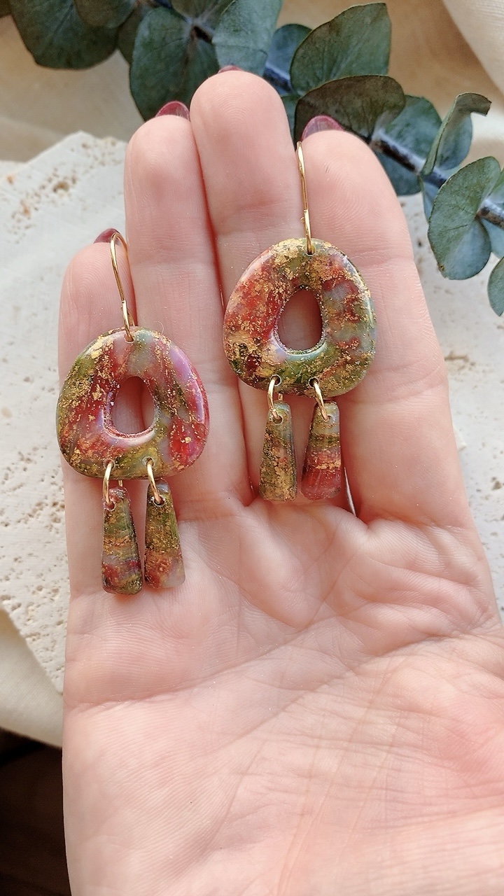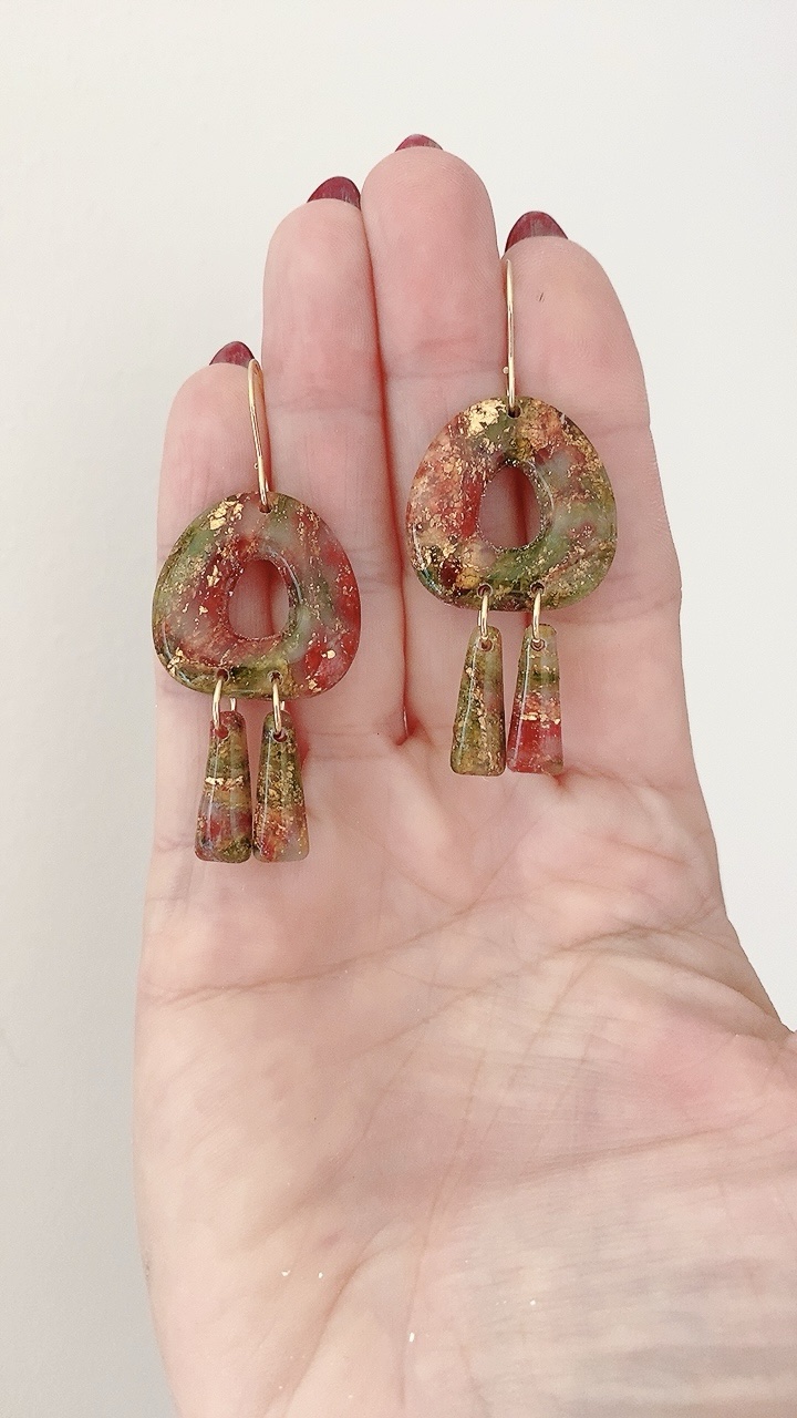 These earrings are carefully handcrafted using polymer clay, acrylic paint and gold leaf. Finished with stainless steel earring hooks. Very lightweight and comfortable to wear. This listing is for the earrings only.