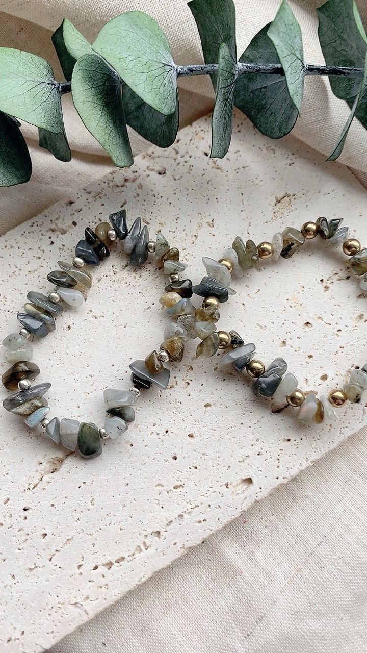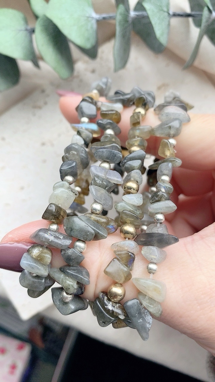 Stunning stretchy real gemstone bracelet. Bracelet will be beautifully presented in a hand stamped jute bag and tissue paper packaging, perfect for gifting!