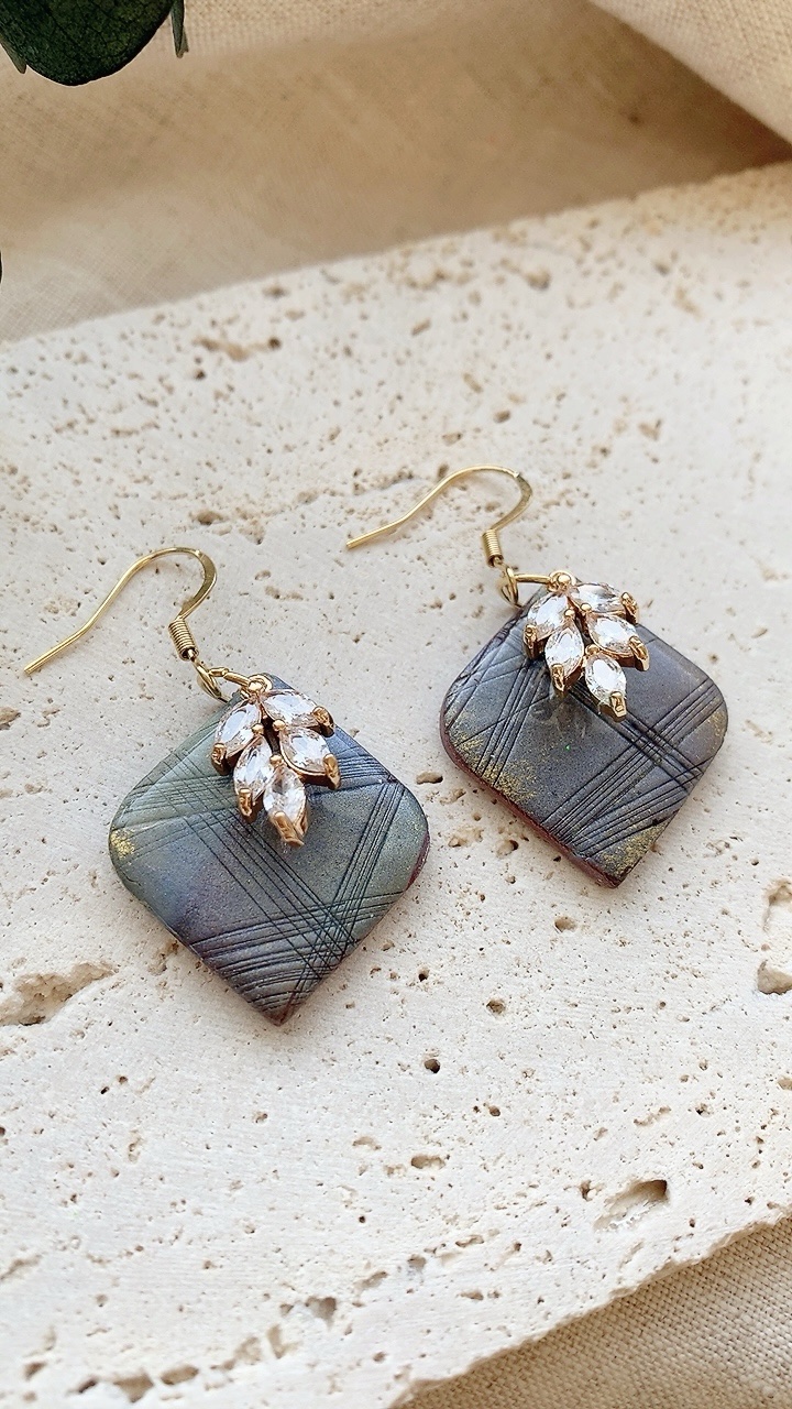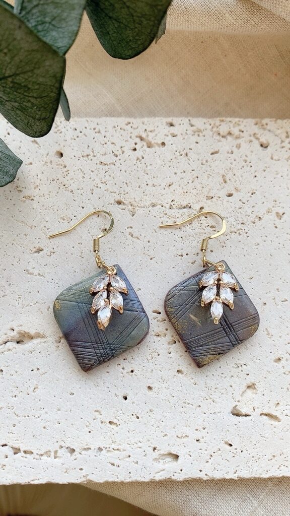 These earrings are carefully handcrafted using polymer clay and a sparkly leaf shaped charm. Finished with stainless steel earring hooks or ball posts. Very lightweight and comfortable to wear. Choose from gold or silver!