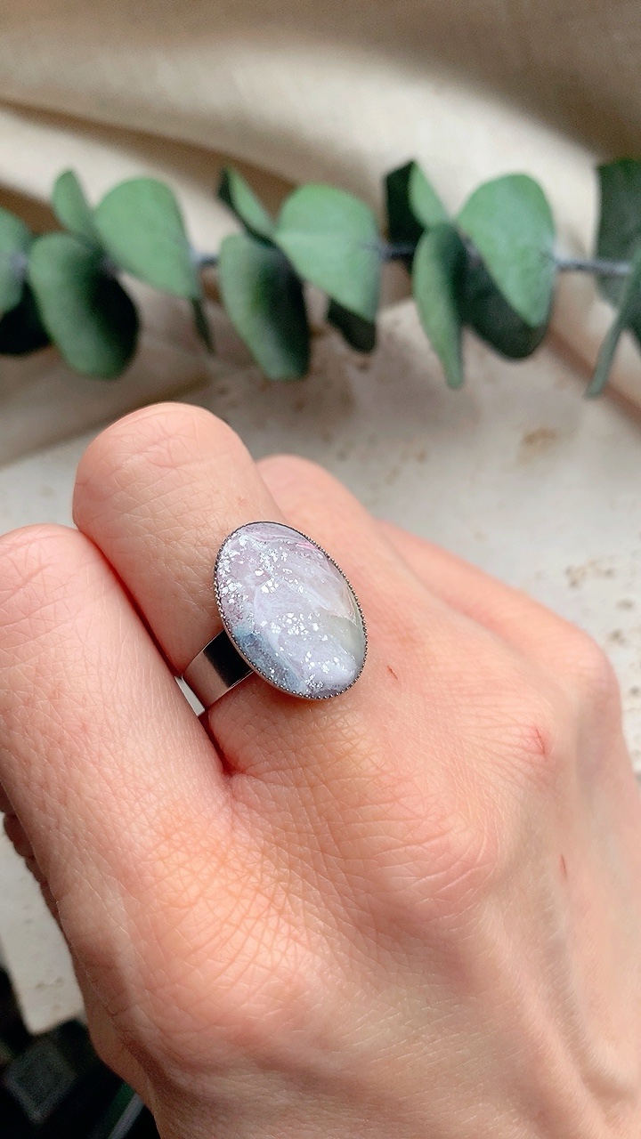 This ring is carefully handcrafted using polymer clay. Embedded on an adjustable ring stainless steel – so won’t turn your finger green and tarnish resistant! Very lightweight and comfortable to wear.