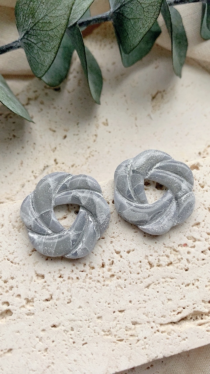 These earrings are carefully handcrafted using polymer clay and silver leaf. Very lightweight and comfortable to wear. Surgical Steel earring posts, hypoallergenic and suitable for sensitive ears. Alternative style of dangle earrings also available, see other listings.