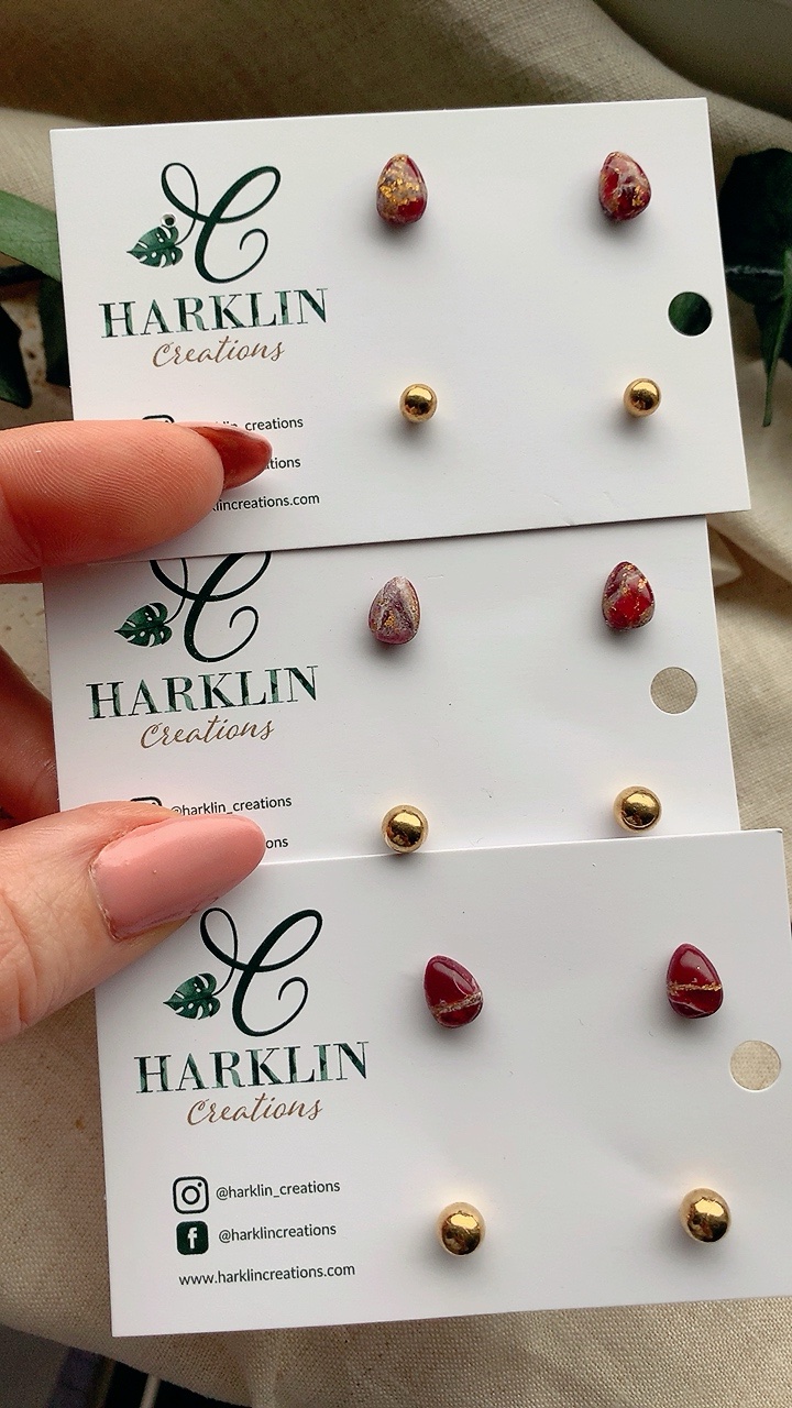 All jewellery is created using high quality polymer clay, hypoallergenic stainless steel findings, durable and comfortable to wear, non-toxic, and most importantly hypoallergenic, making these earrings safe for your skin and perfect for those with sensitive ears.