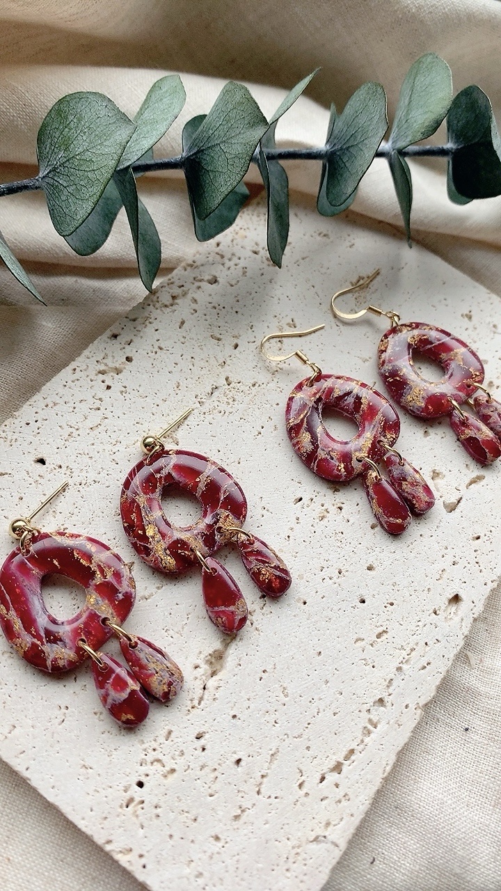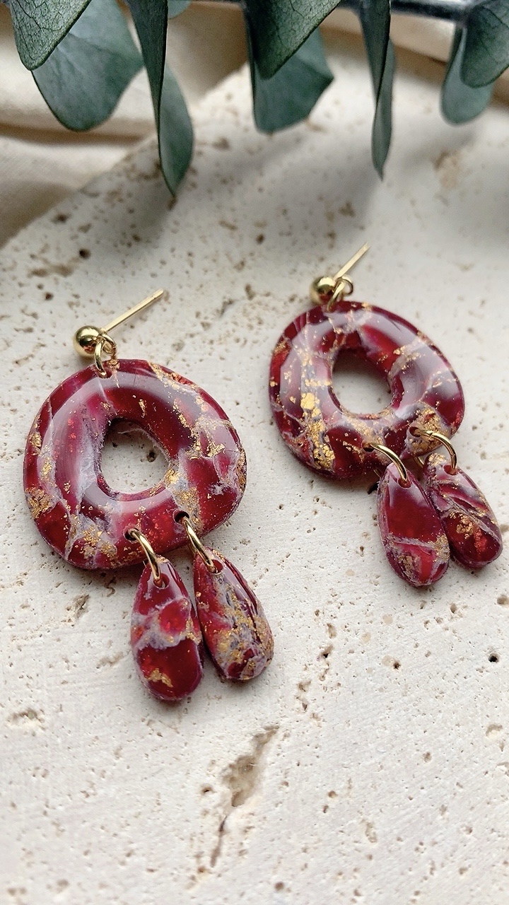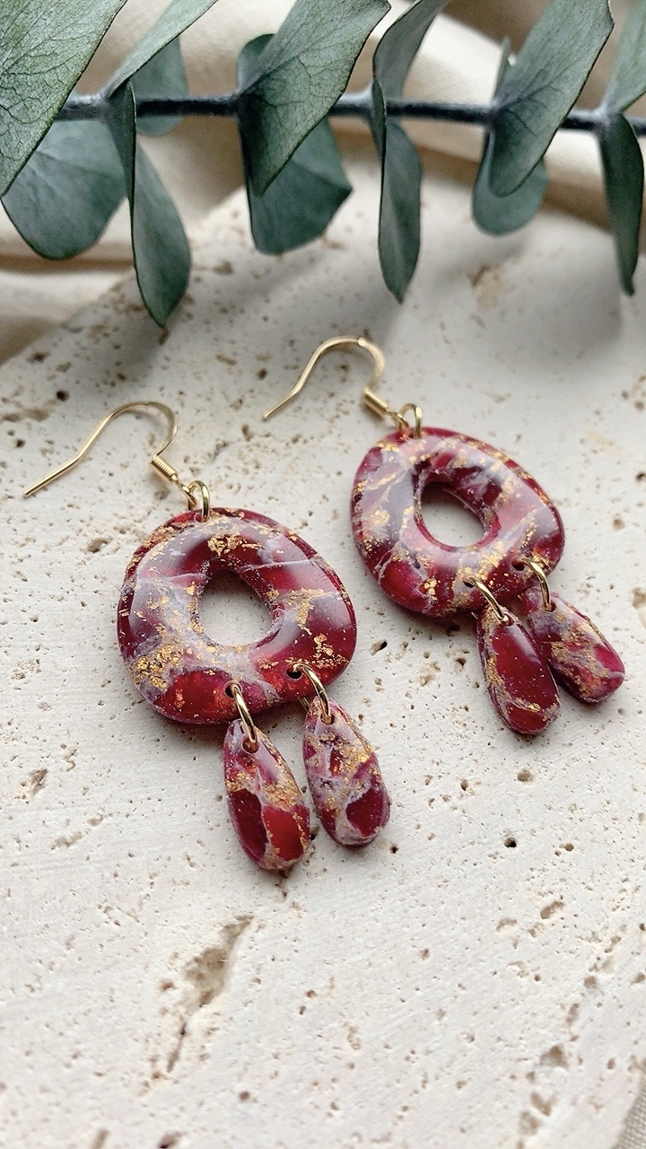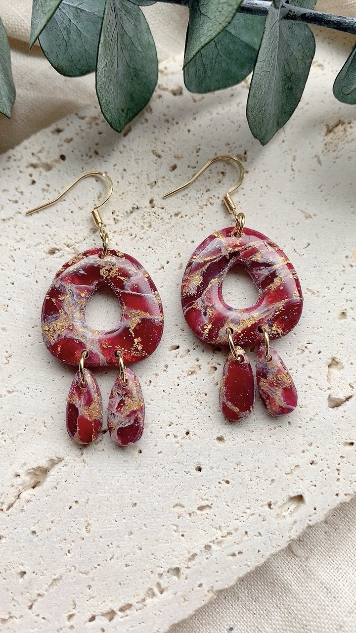 These earrings are carefully handcrafted using polymer clay and gold leaf. Very lightweight and comfortable to wear. Choose from stainless steel hooks/ballposts. Also available in silver!