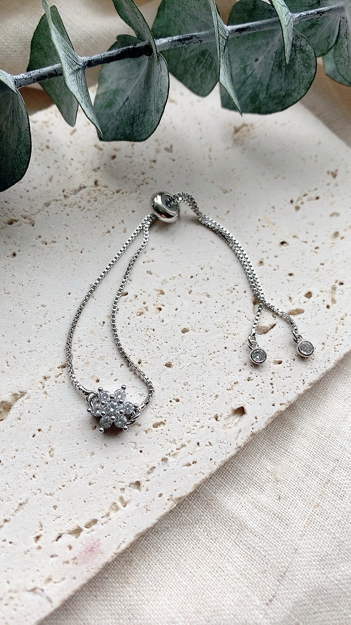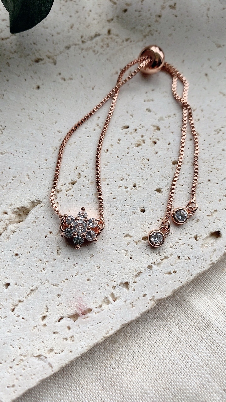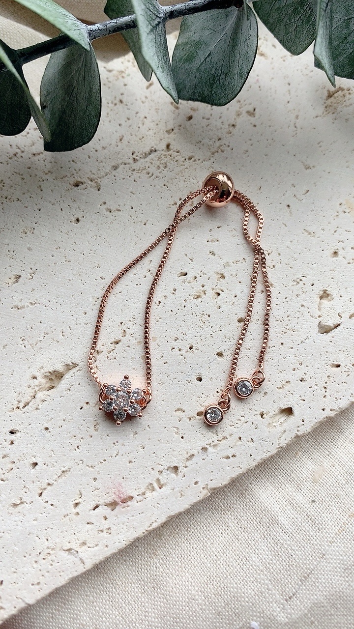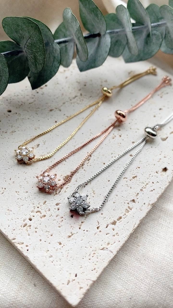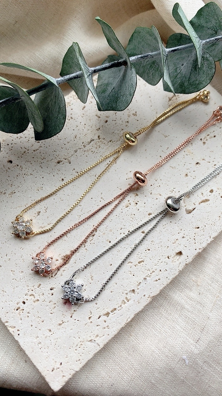 This stainless steel, adjustable slider bracelet slides to fit any size wrist! Choose from Gold, Silver or Rose Gold.