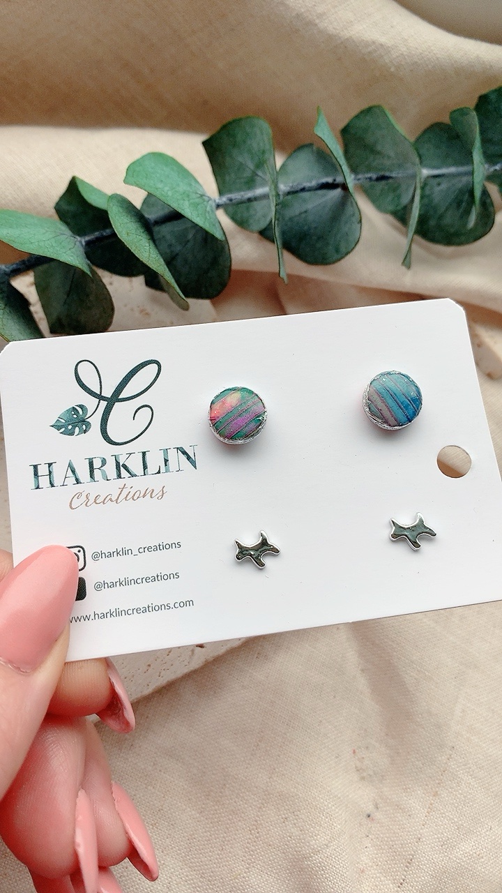 All jewellery is created using high quality polymer clay, hypoallergenic stainless steel findings, durable and comfortable to wear, non-toxic, and most importantly hypoallergenic, making these earrings safe for your skin and perfect for those with sensitive ears.