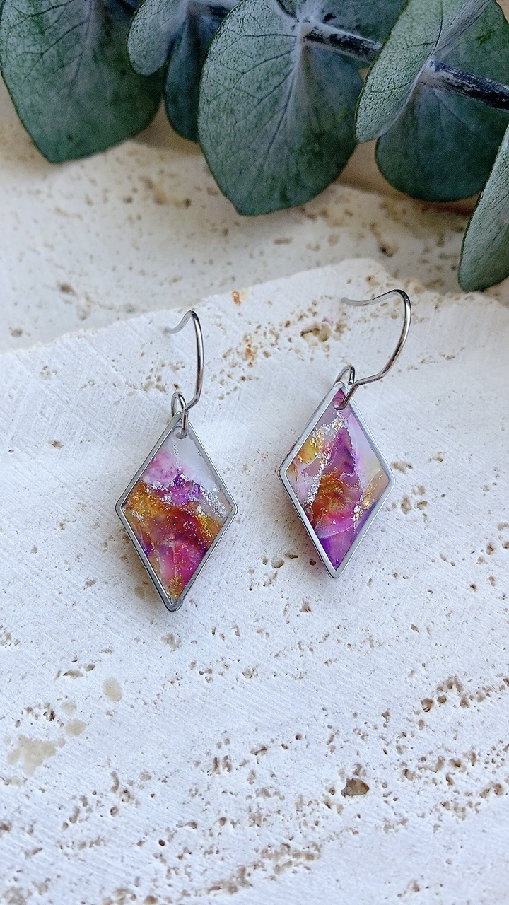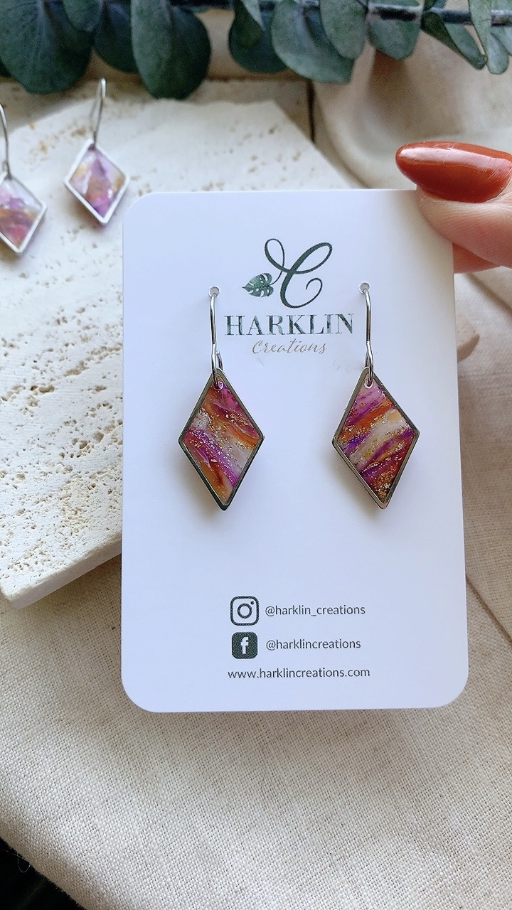 These earrings are carefully handcrafted using polymer clay and finished with stainless steel findings. Very lightweight and comfortable to wear.
