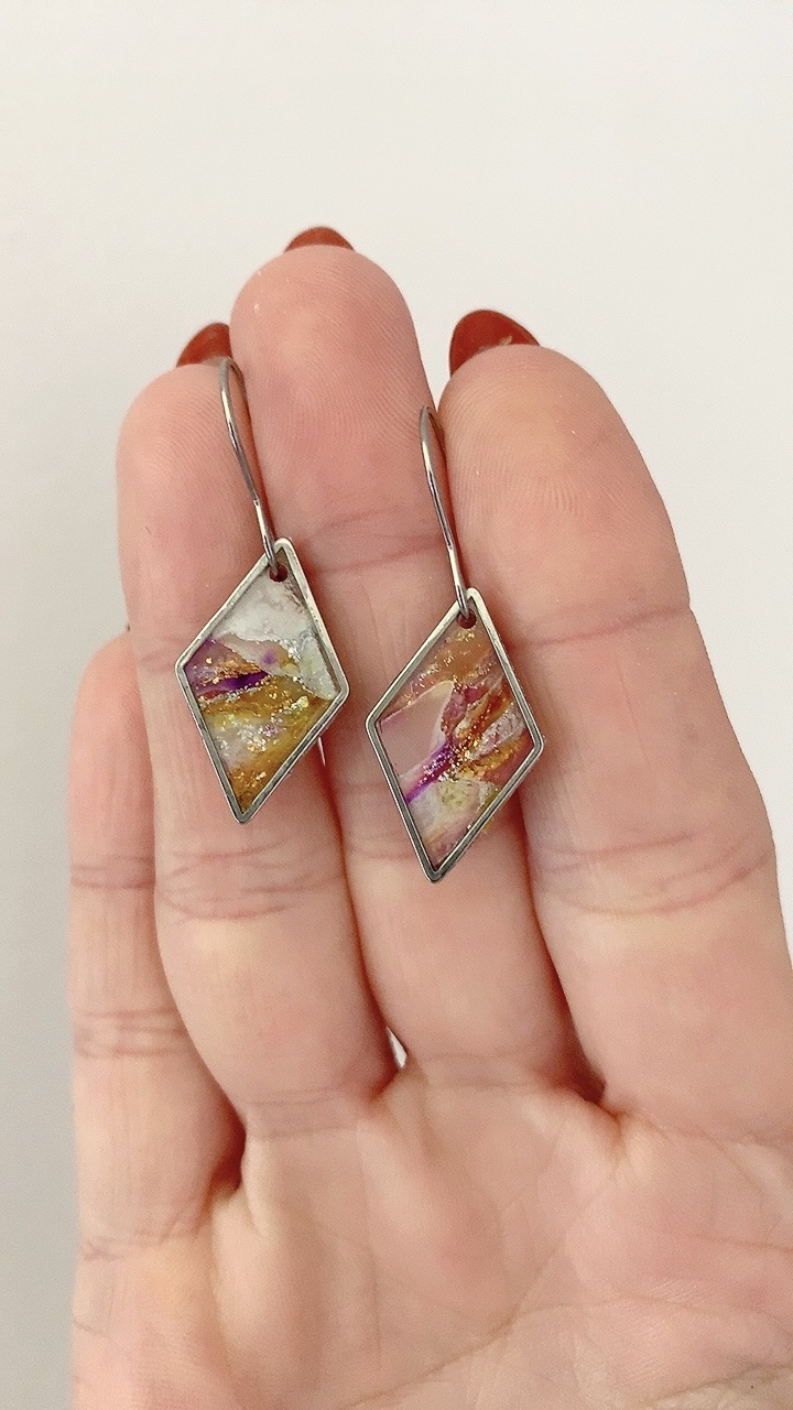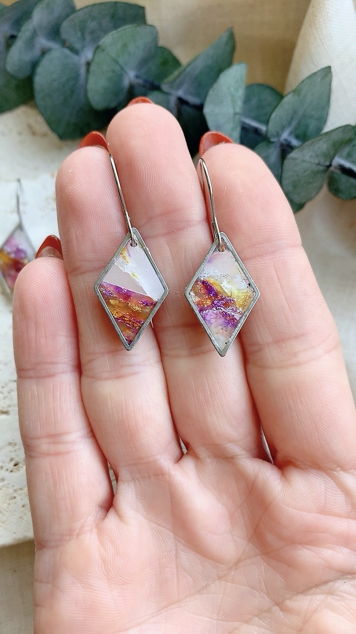 By nature of handmade products, every pair is completely unique-one of a kind! This means that each pair may vary slightly in colour or size. Enjoy the organic nature of my handmade pieces, appreciating the small imperfections that give them character – from fingerprints and dust to texture, visible brush strokes, and occasional gentle bubbling.