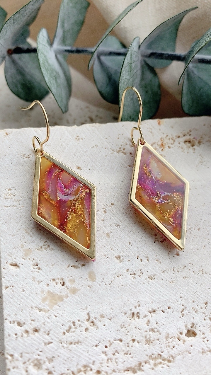 These earrings are carefully handcrafted using polymer clay and finished with stainless steel findings. Very lightweight and comfortable to wear.