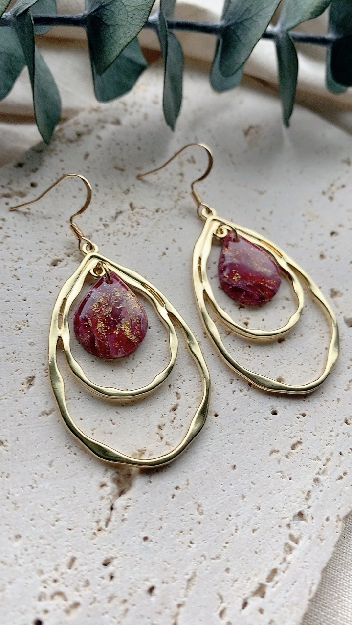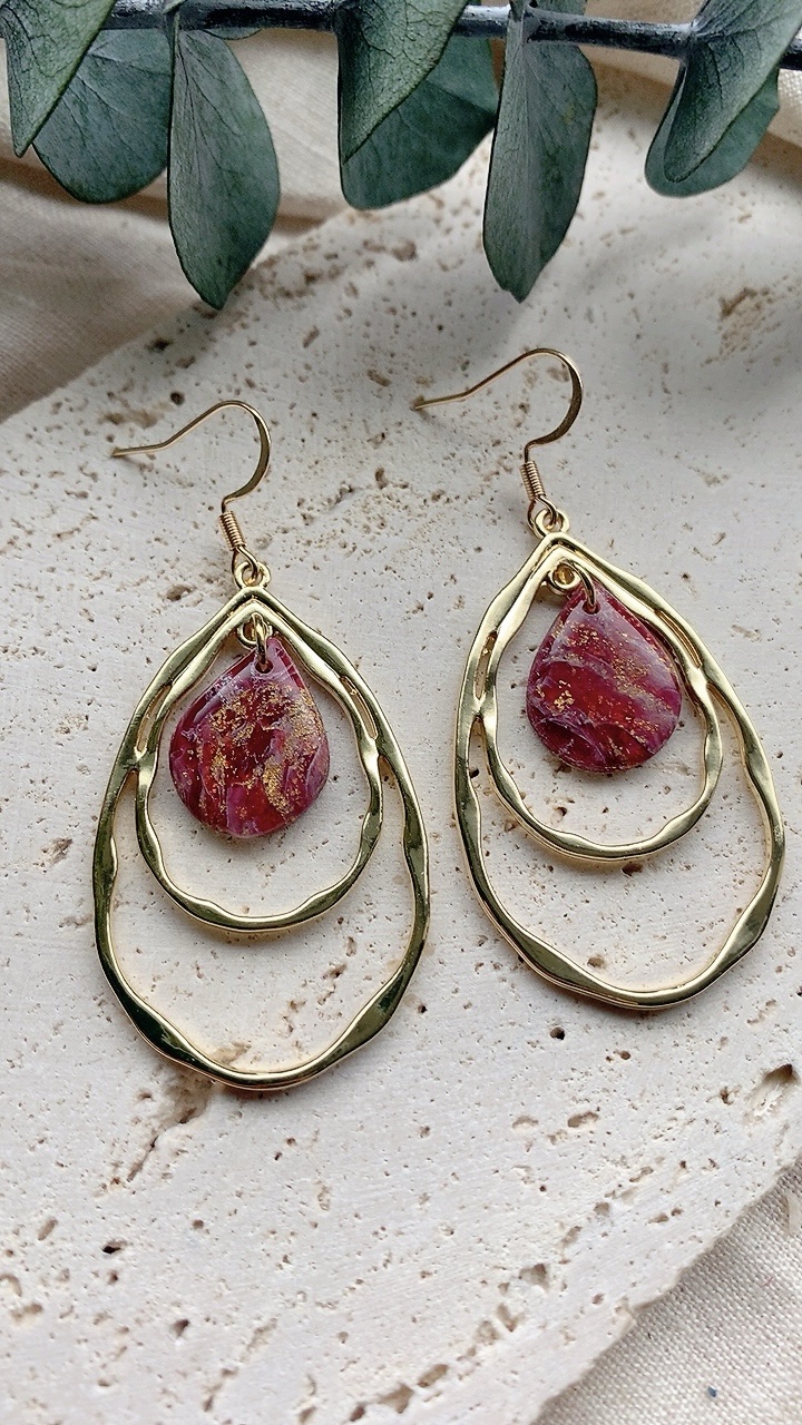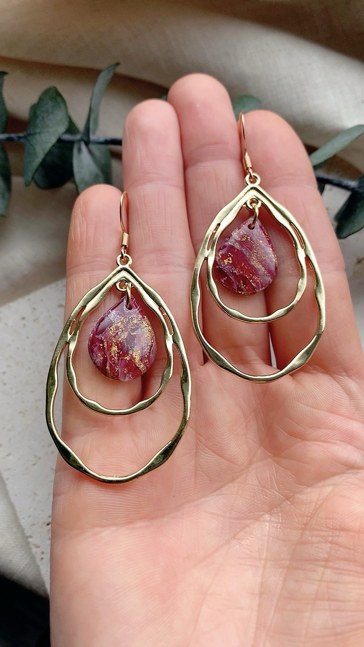 These earrings are carefully handcrafted using polymer clay and silver leaf finished with an attractive teadrop shaped charm. Very lightweight and comfortable to wear. Choose from stainless steel hooks/ballposts. Also available in gold!