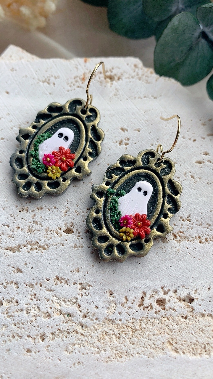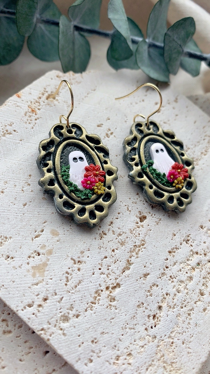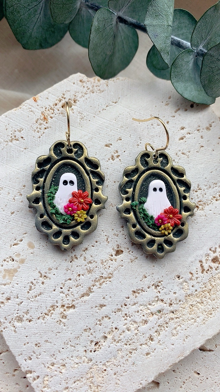 These earrings are carefully handcrafted using polymer clay and finished with stainless steel findings. Very lightweight and comfortable to wear. Choose from gold or silver (see other listings)