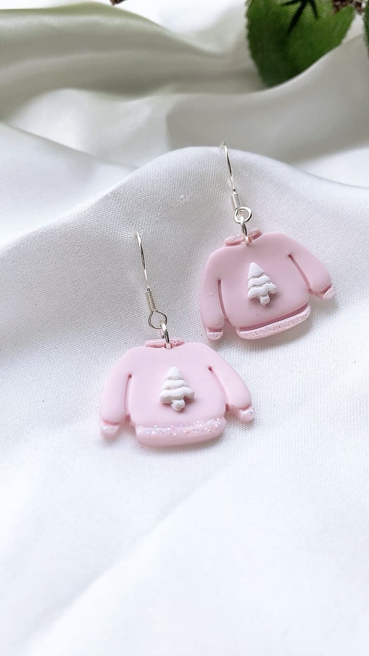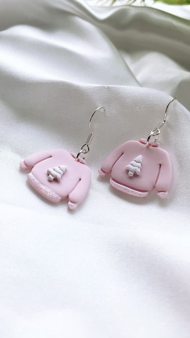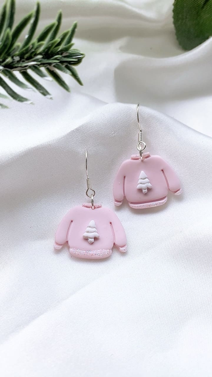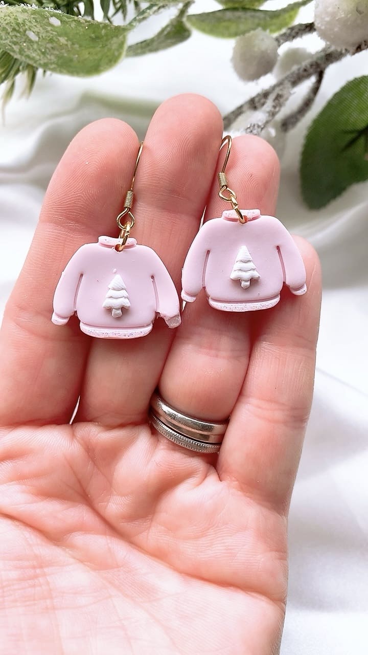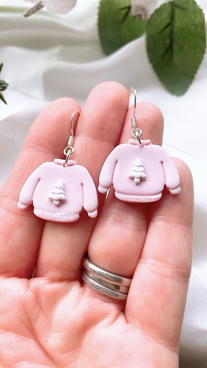 Subtle white iridescent sparkly glitter accents these gorgeous pink Christmas Jumpers, perfect for the Christmas season! All earring findings are hypoallergenic and suitable for sensitive ears.