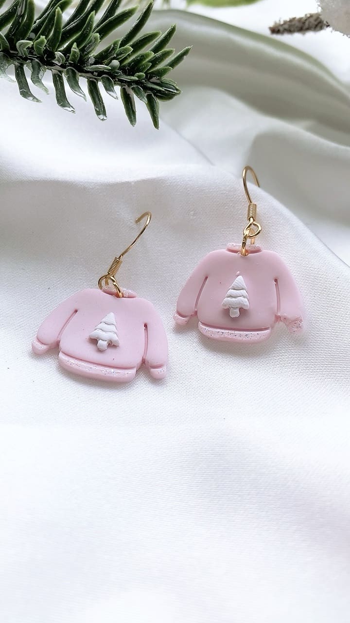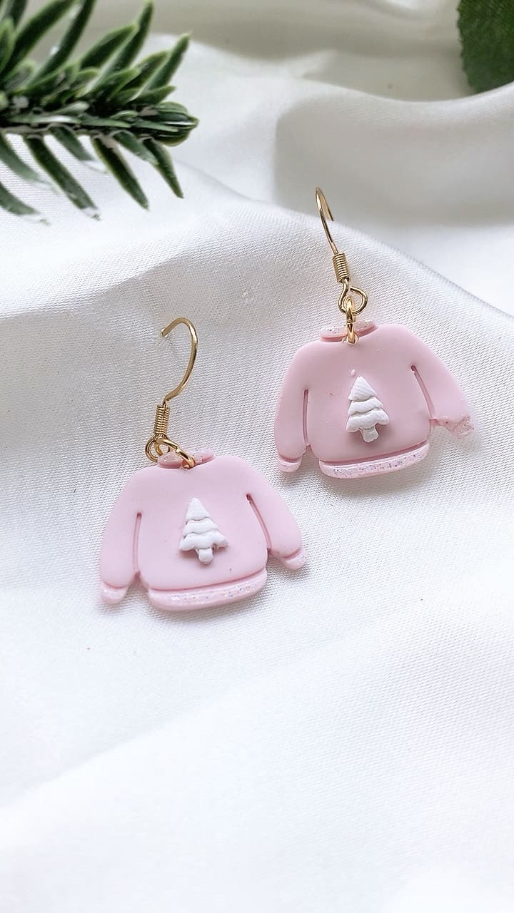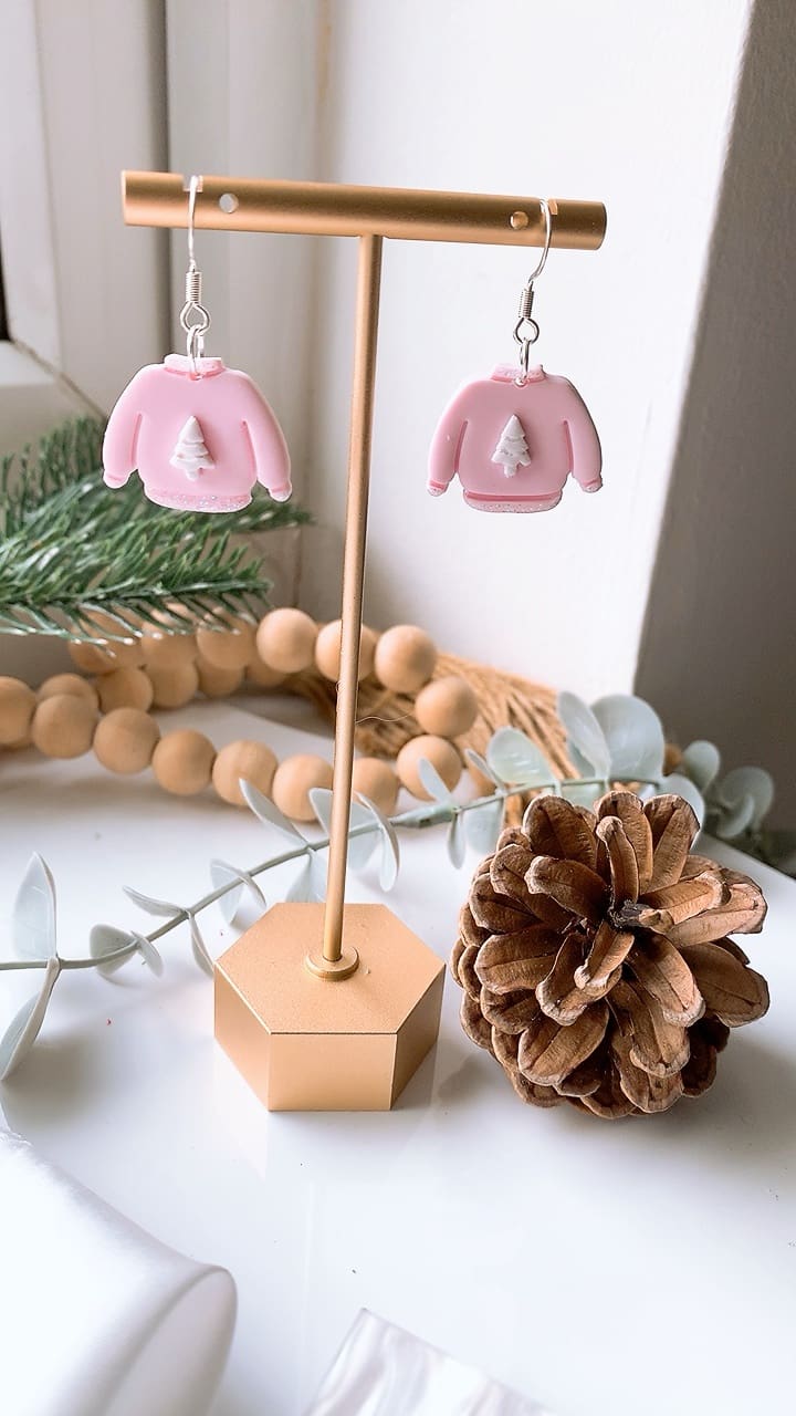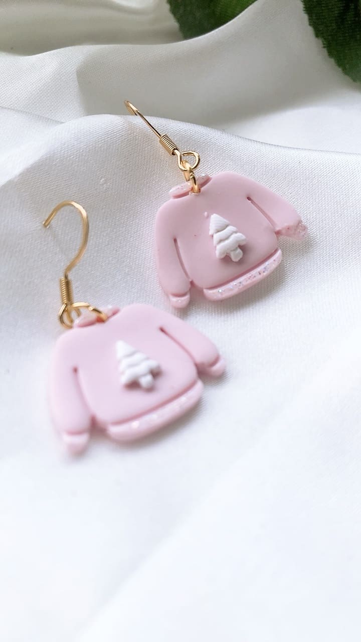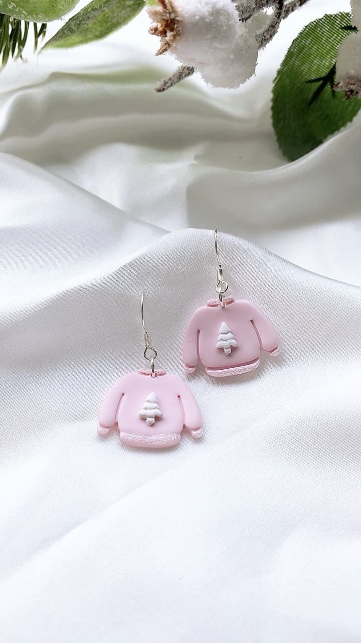 Subtle white iridescent sparkly glitter accents these gorgeous pink Christmas Jumpers, perfect for the Christmas season! All earring findings are hypoallergenic and suitable for sensitive ears.