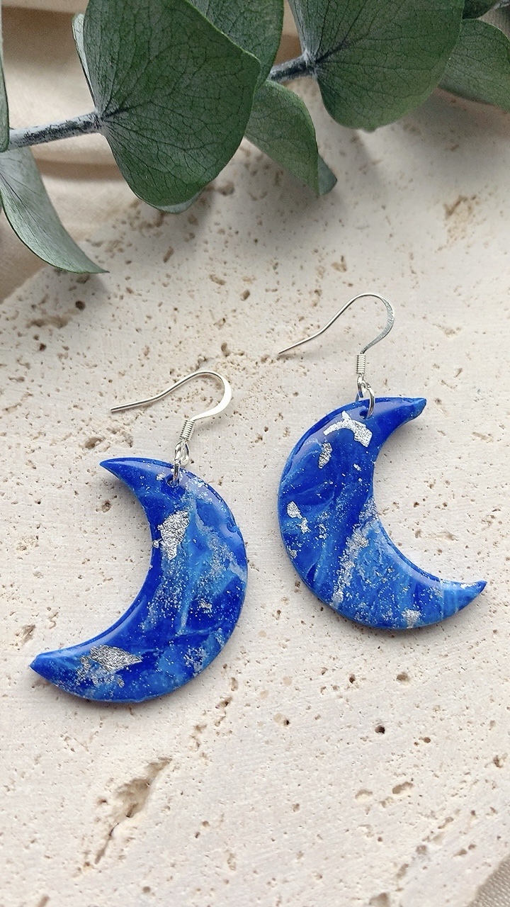 These earrings are carefully handcrafted using polymer clay and silver leaf. Finished on surgical steel earring posts suitable for sensitive ears. Very lightweight and comfortable to wear. Choose from gold or silver!