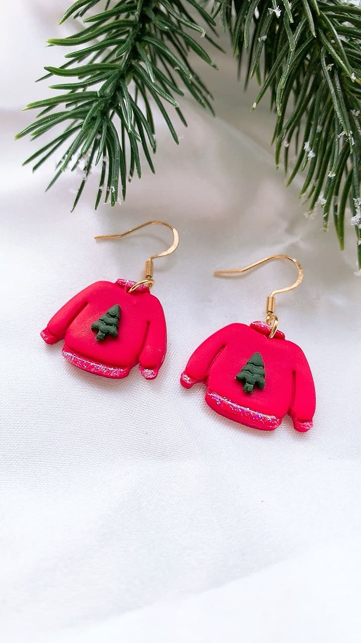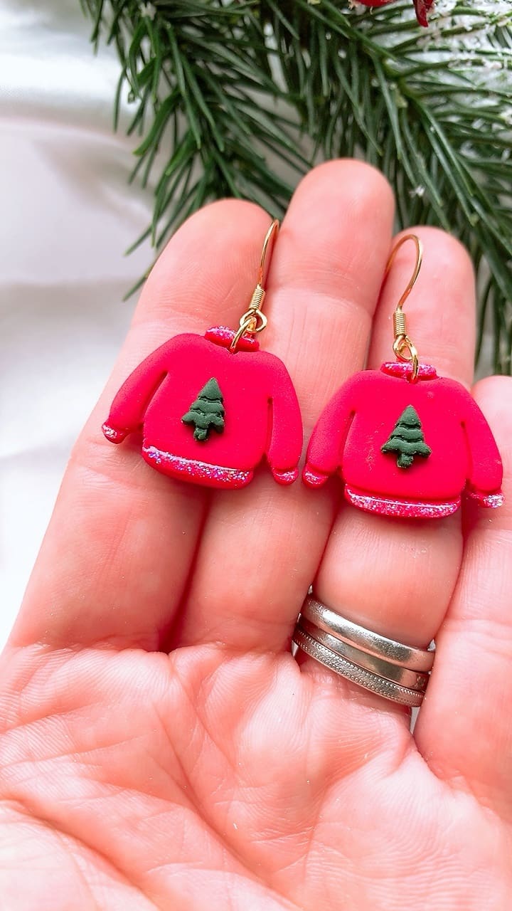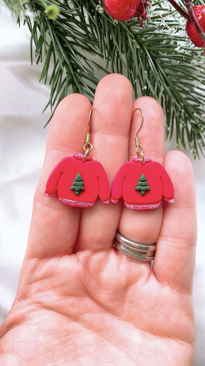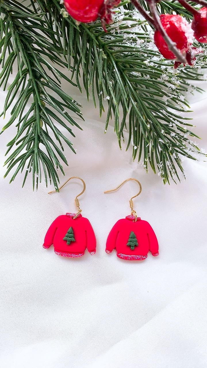 Subtle white iridescent sparkly glitter accents these gorgeous red Christmas Jumpers, perfect for the Christmas season! All earring findings are hypoallergenic and suitable for sensitive ears.