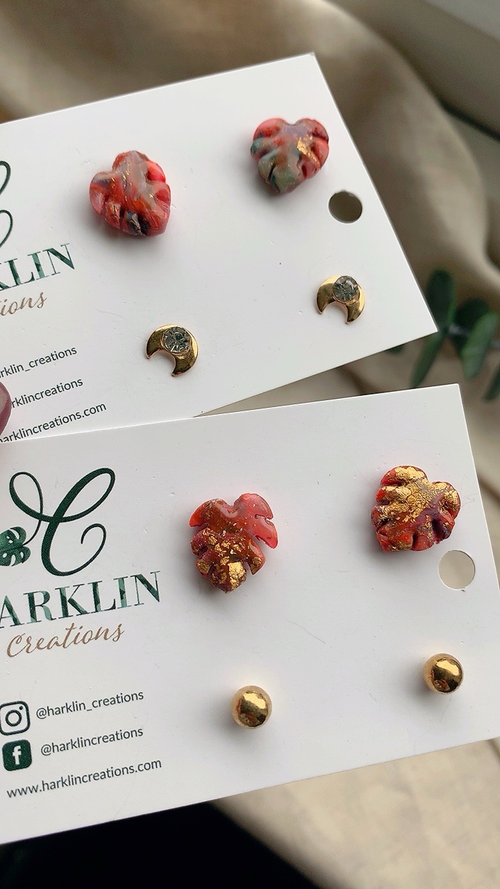 Red Monstera Studs
