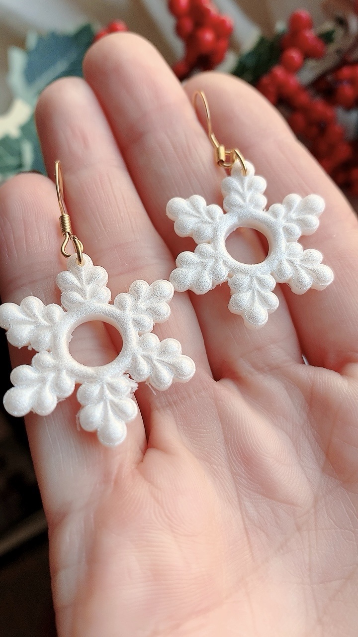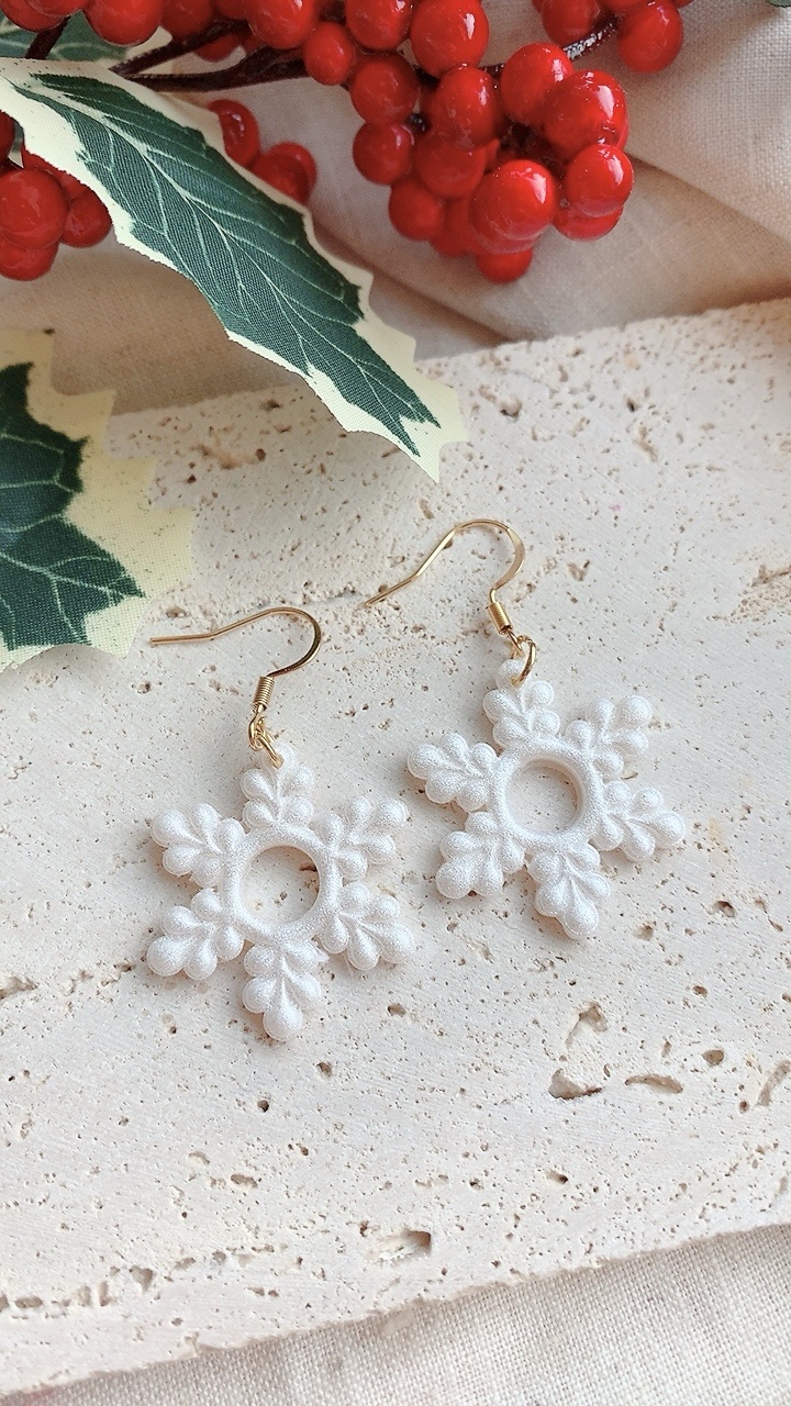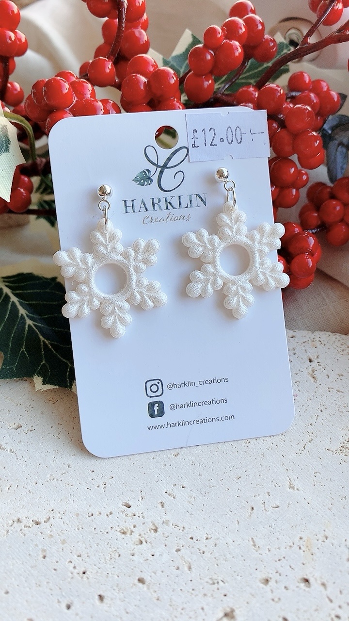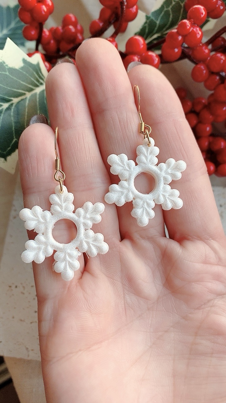 Shimmery snowflake earrings perfect for the Christmas season! All earring findings are hypoallergenic and suitable for sensitive ears.