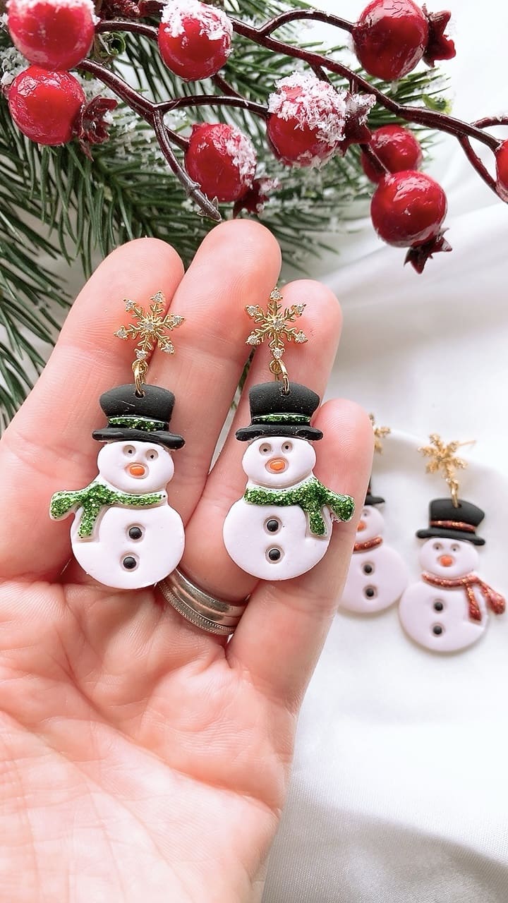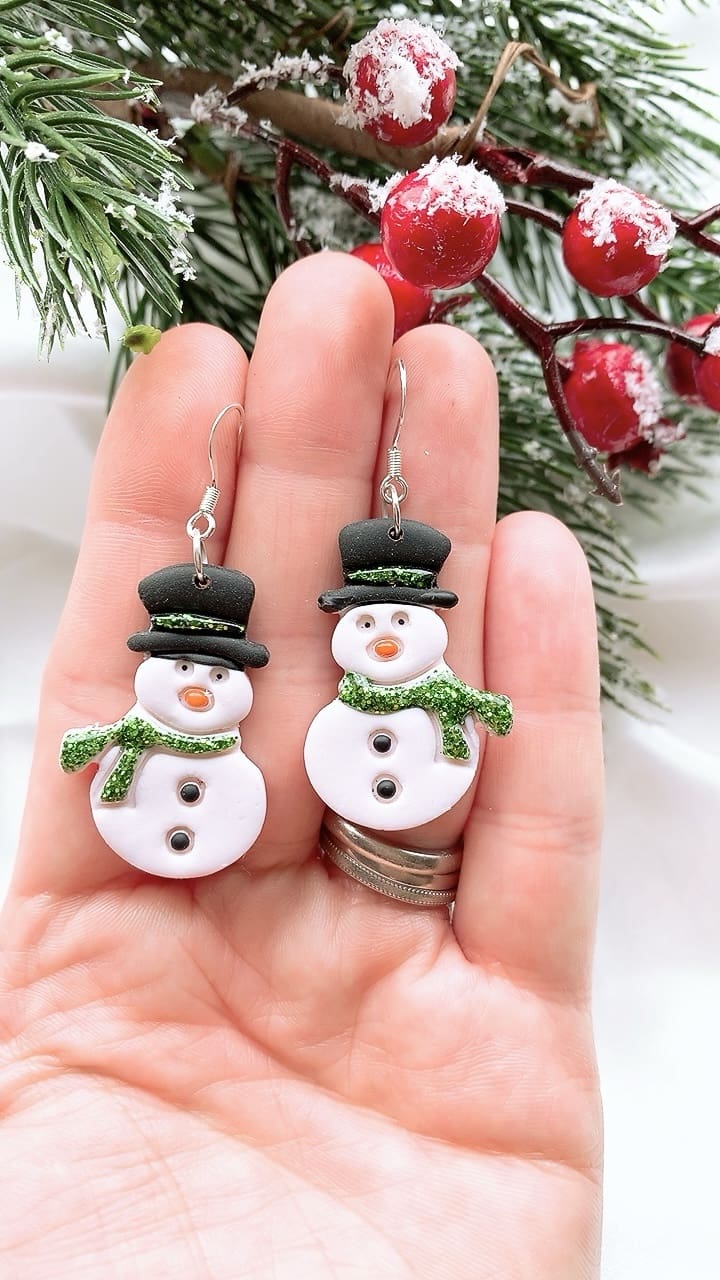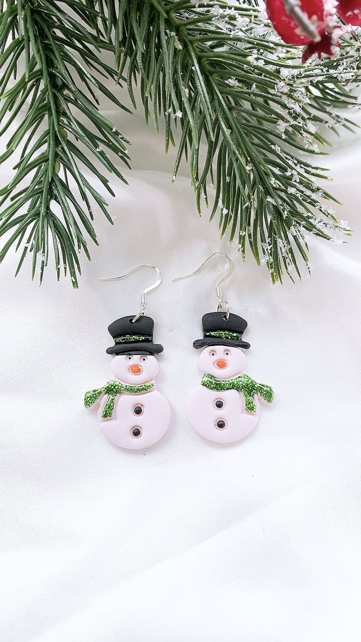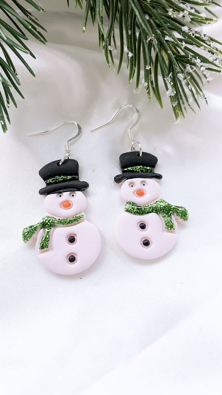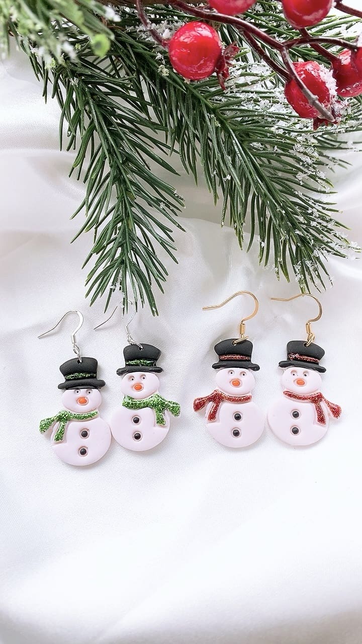 Cute snowman earrings with either green or red glittery scarf and hat! Perfect for the Christmas season! Choose from 198k gold plated nickel free snowflake tops, orĀ stainless steel hooks or ball posts. Please note that snowflake tops only come in GOLD.