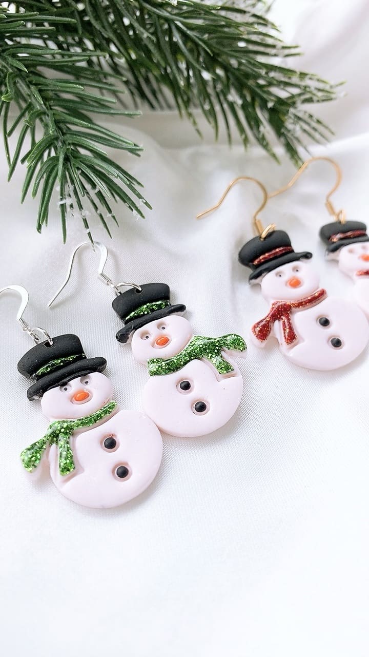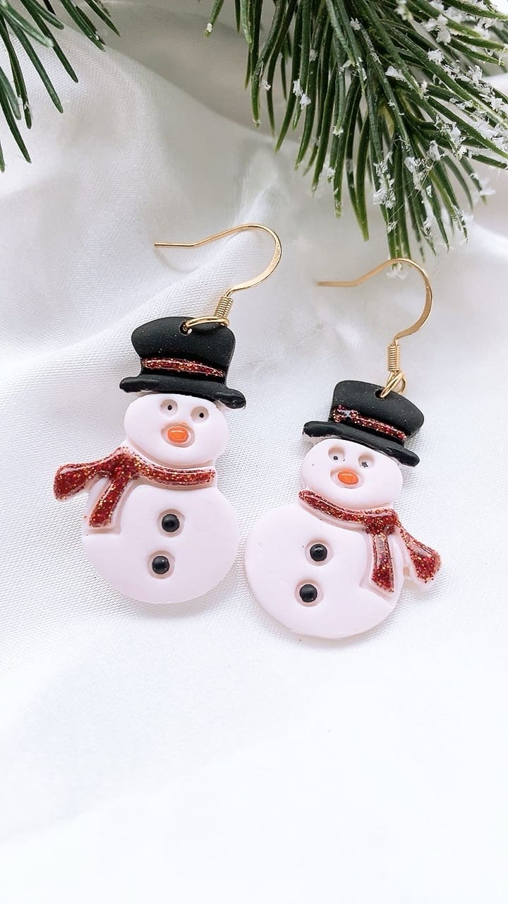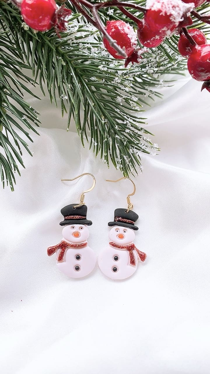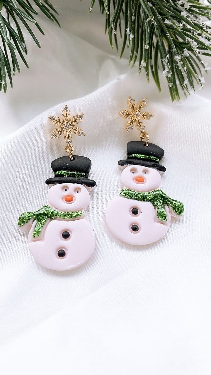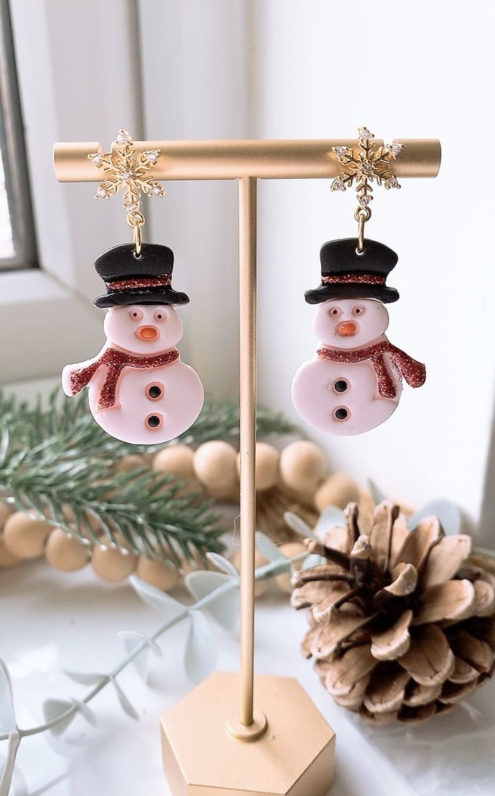 Cute snowman earrings with either green or red glittery scarf and hat! Perfect for the Christmas season! Choose from 198k gold plated nickel free snowflake tops, orĀ stainless steel hooks or ball posts. Please note that snowflake tops only come in GOLD.