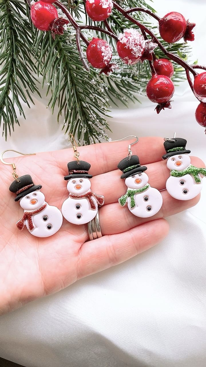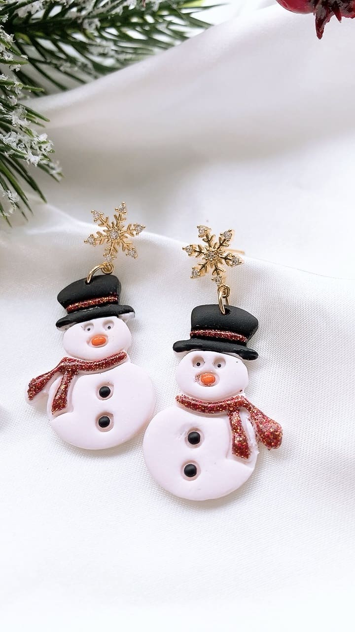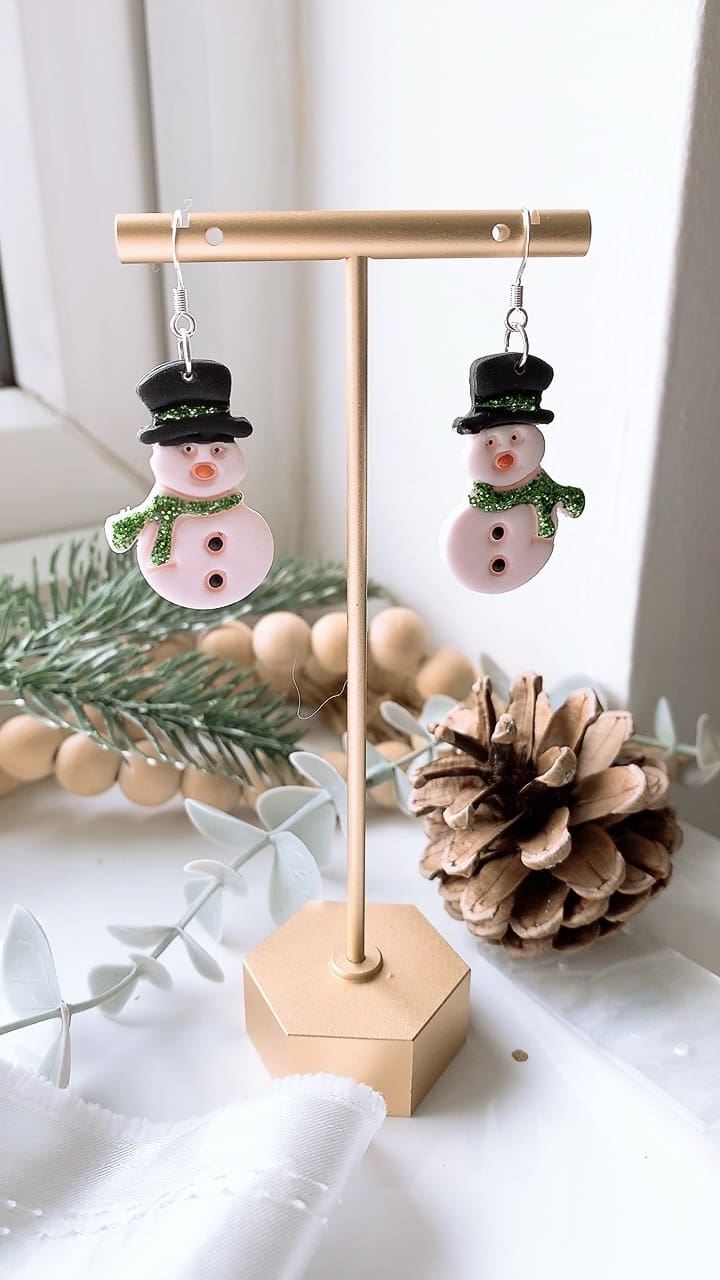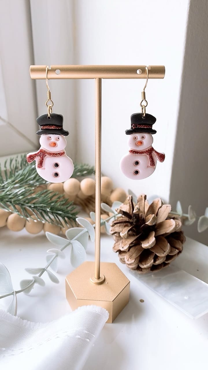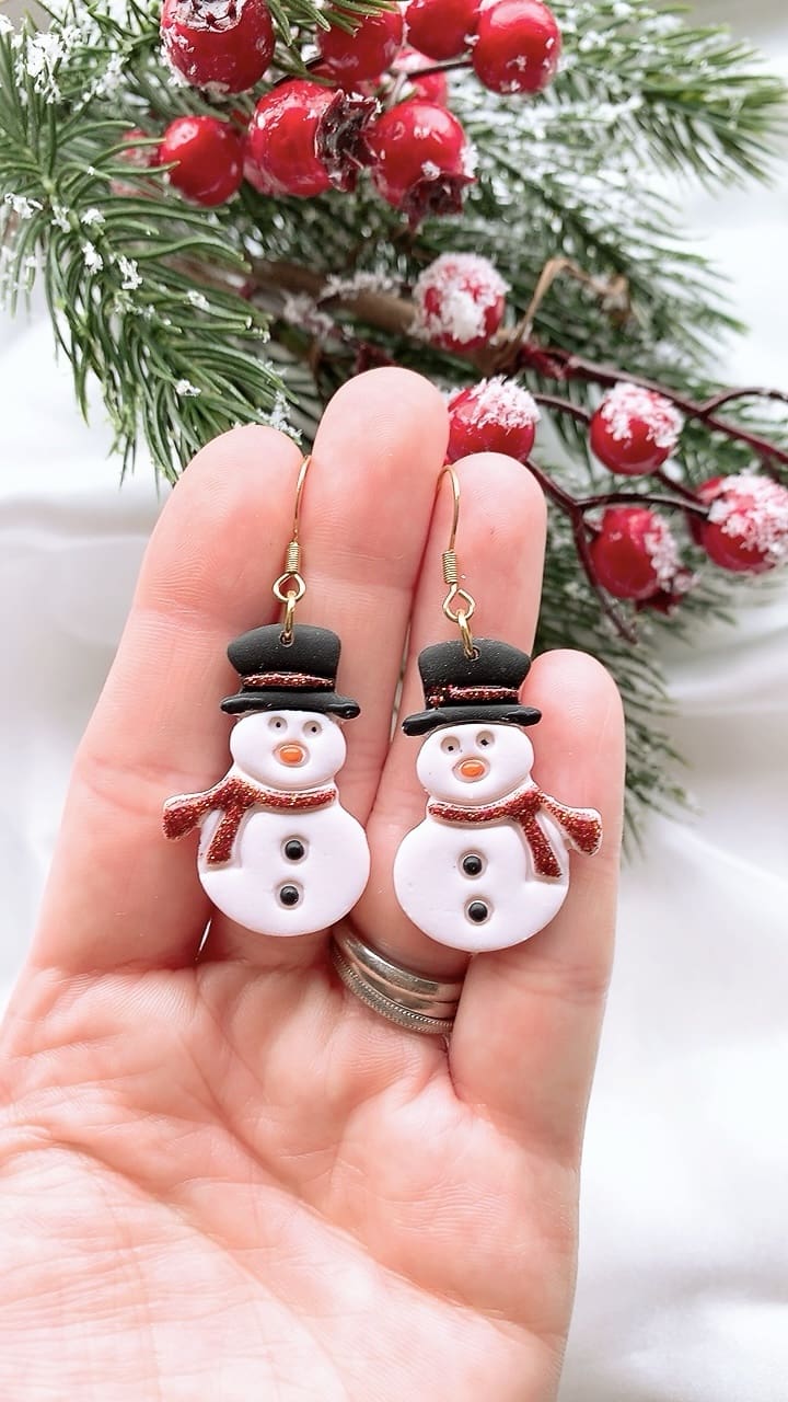 Cute snowman earrings with either green or red glittery scarf and hat! Perfect for the Christmas season! Choose from 198k gold plated nickel free snowflake tops, orĀ stainless steel hooks or ball posts. Please note that snowflake tops only come in GOLD.