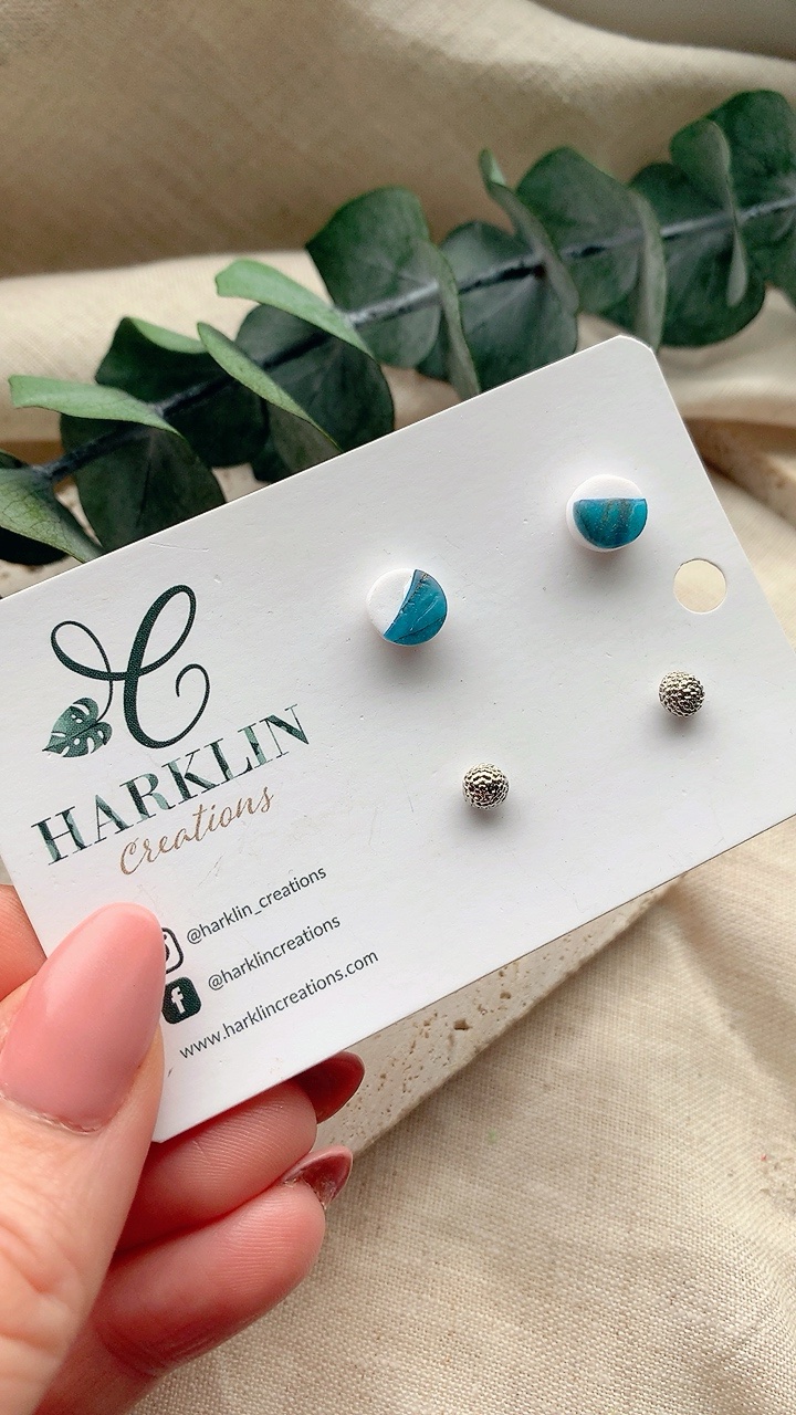 By nature of handmade products, every pair is completely unique-one of a kind! This means that each pair may vary slightly in colour or size. Enjoy the organic nature of my handmade pieces, appreciating the small imperfections that give them character – from fingerprints and dust to texture, visible brush strokes, and occasional gentle bubbling.