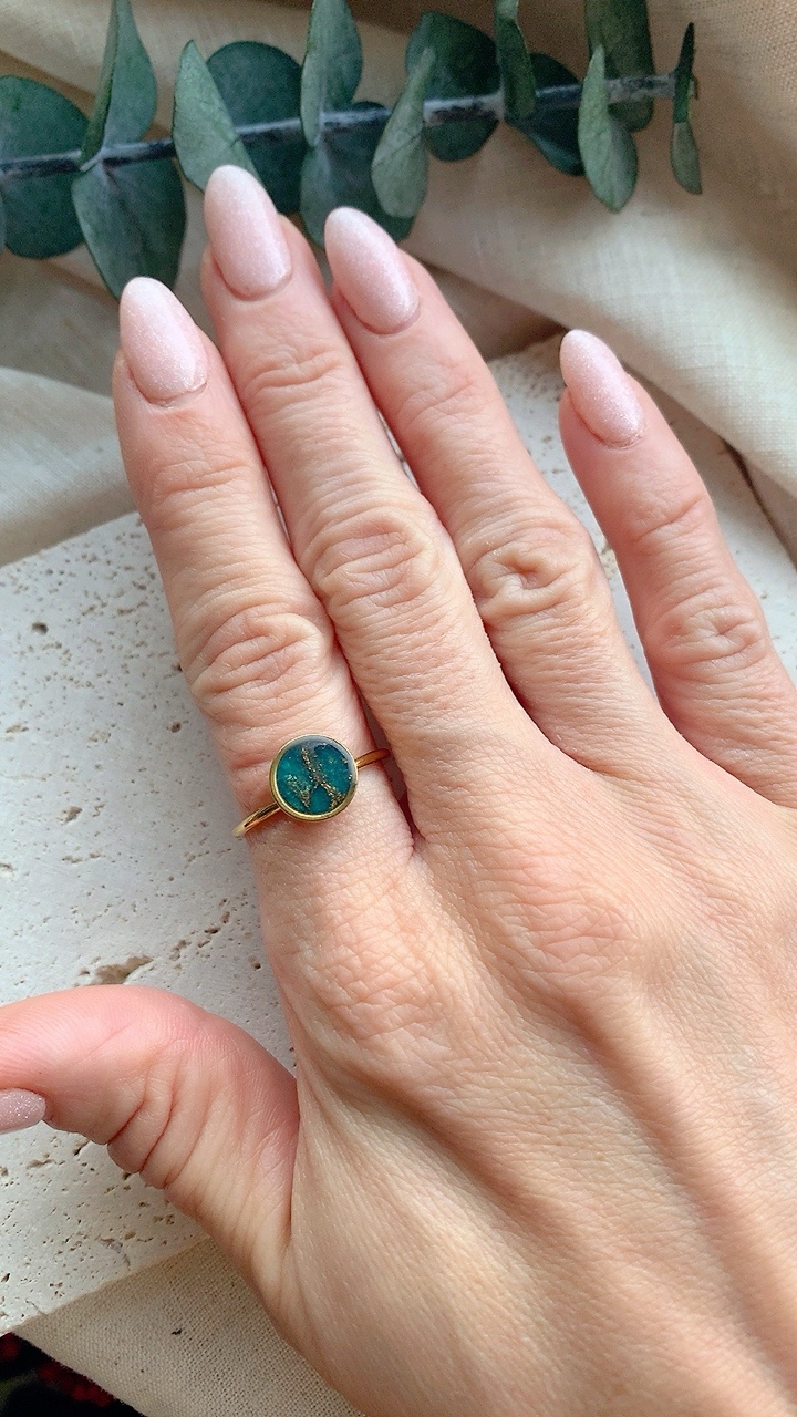 This ring is carefully handcrafted using polymer clay. Embedded on an adjustable ring stainless steel – so won’t turn your finger green and tarnish resistant! Very lightweight and comfortable to wear.