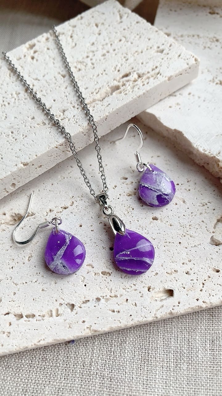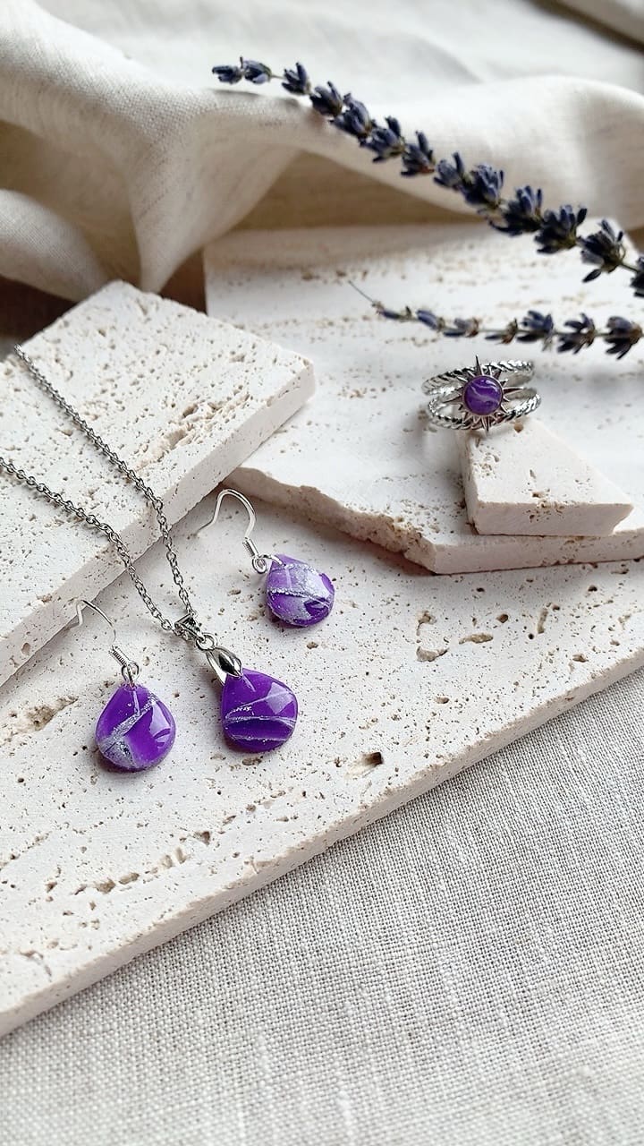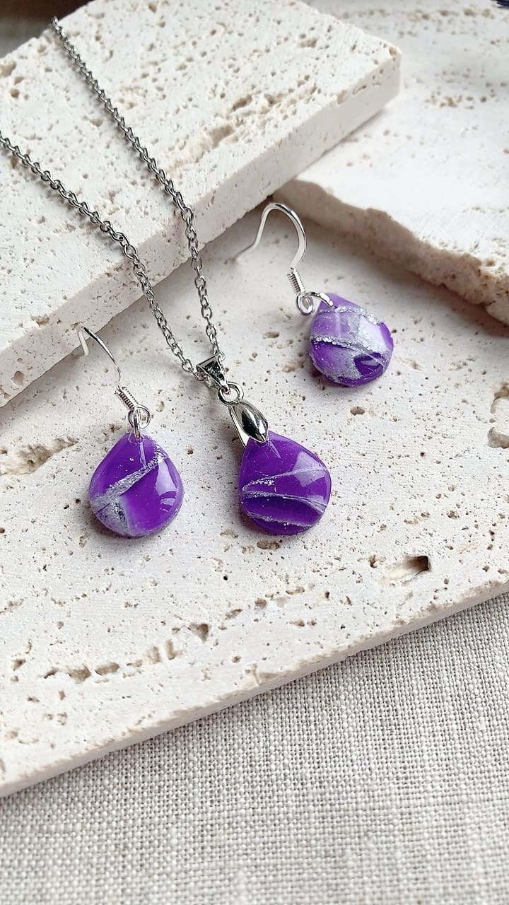 These earrings are carefully handcrafted using polymer clay and stainless steel earring hooks. Very lightweight and comfortable to wear. Inspired to look just like amethyst but made entirely from Polymer Clay! This listing is for the earrings only.